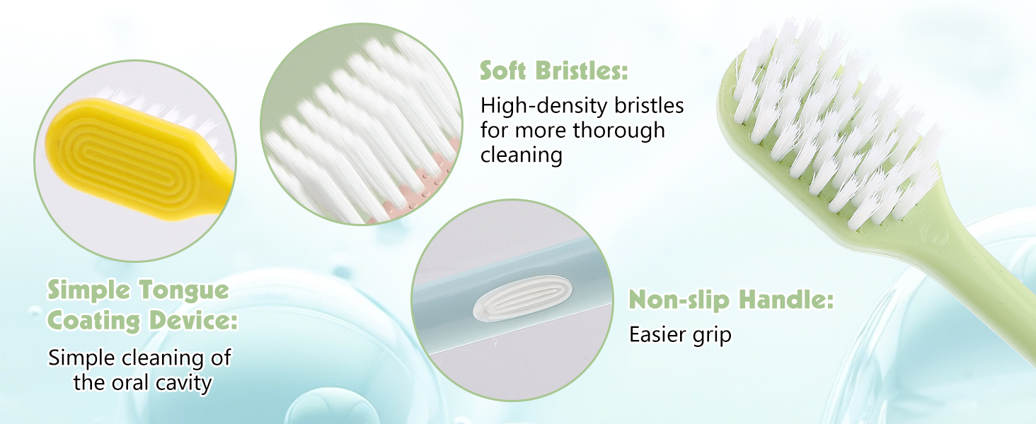 【رأس فرشاة عريض ذكي】: فرشاة الأسنان الناعمة لرأس البالغين أوسع من فرش الأسنان العادية، والتي يمكن أن تغطي المزيد من أسطح الأسنان وتزيد من مساحة التنظيف.