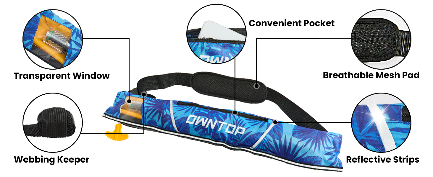 قابل للتحويل تلقائيًا/يدويًا: يتم تنشيط الوضع التلقائي على الفور عند غمر الماء، بينما يمنع الوضع اليدوي فقط (عبر سلك السحب) التضخم العرضي أثناء الأنشطة ذات الرذاذ العالي. يشتمل على غطاء يدوي لسهولة التبديل