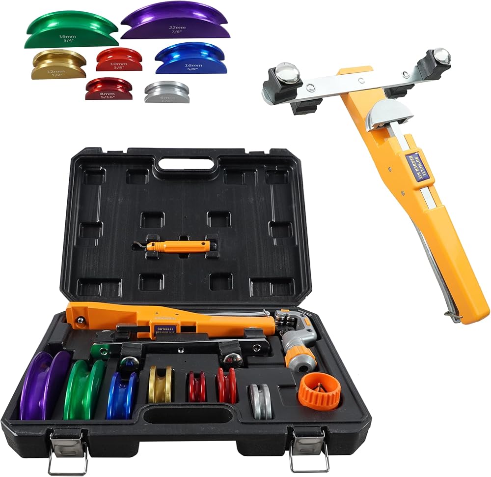 مجموعة الانحناء الاحترافية الكاملة: تأتي مع قاطع أنبوب، وأداة إزالة الأزيز، ومجموعة العارضة، وحقيبة تخزين محمولة متينة. يوفر حلاً كاملاً لقطع الأنابيب وإعدادها وثنيها دون الحاجة إلى أدوات إضافية.