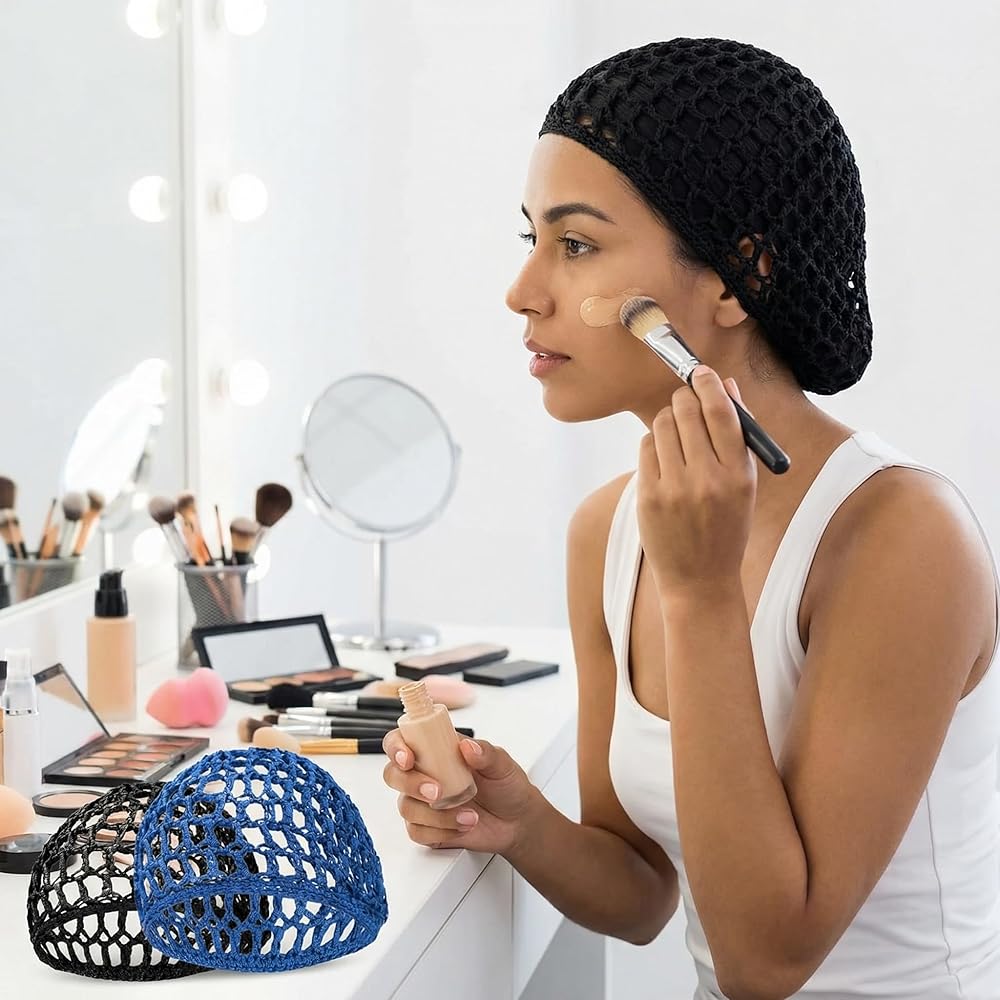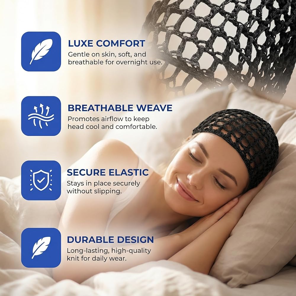 - [مادة ممتازة] مصنوعة من البوليستر المتين وجيد التهوية، شبكات الشعر الكروشيه هذه صديقة للبشرة ومريحة للارتداء طوال الليل.