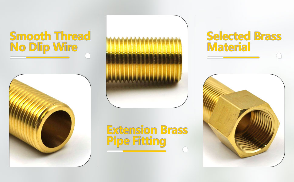 تطبيق متعدد الاستخدامات: تركيبات تمديد الأنابيب النحاسية الملولبة 1/2 بوصة ذكر إلى 1/2 بوصة مصنوعة لتمديد طول الأنابيب أو التركيبات. تُستخدم تجهيزات الأنابيب النحاسية هذه على نطاق واسع لتوصيل أو تمديد رأس الدش، وفوهة الحوض، وحشو الحوض، وصنبور الحوض، والمنافذ والتجهيزات الأخرى بنفس أنواع الخيوط على كلا الطرفين. كما أنها مناسبة للشحوم والوقود والغاز الطبيعي والتبريد والأجهزة والأنظمة الهيدروليكية في توصيلات خطوط الأنابيب ذات الضغط المنخفض والمتوسط