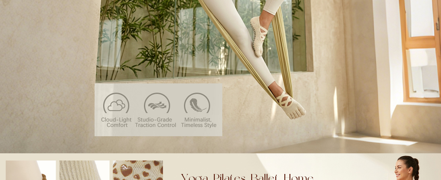 - قبضة فائقة مضادة للانزلاق: مقابض سيليكون ممتازة على النعل توفر أقصى قدر من الثبات، وتمنع الانزلاق على الأرضيات الصلبة أو سجادات الاستوديو.