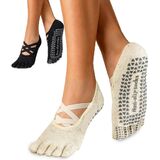 - ملاءمة آمنة وتصميم أنيق: تتميز بأشرطة متقاطعة أنيقة تحافظ على ثبات الجوارب في مكانها أثناء حركات البيلاتيس المكثفة أو حركات باري.