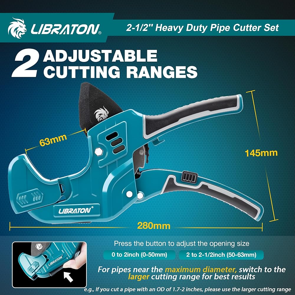 【توافق متعدد الأنابيب】يتوافق قاطع الأنابيب PEX مع الأنابيب التي يصل قطرها الأقصى إلى 2-1/2 بوصة (63 مم)، مما يلبي احتياجات القطع المختلفة لأقطار الأنابيب المختلفة. قاطع الأنابيب الخاص بنا مناسب لقطع الأنابيب البلاستيكية، وCPVC، وPP-R، وPEX، وPE، وغيرها من الأنابيب البلاستيكية، بالإضافة إلى أنابيب الصرف الصحي المختلفة وأنابيب التدفئة والتهوية وتكييف الهواء (HVAC).