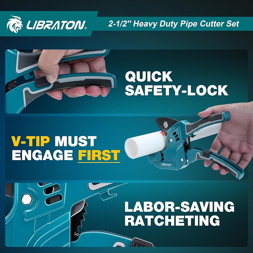 【تشغيل بيد واحدة】تتميز قاطعة الأنابيب البلاستيكية لدينا بتصميم مريح مع آلية السقاطة، مما يتيح التشغيل بيد واحدة لقطع أسهل وأكثر كفاءة.