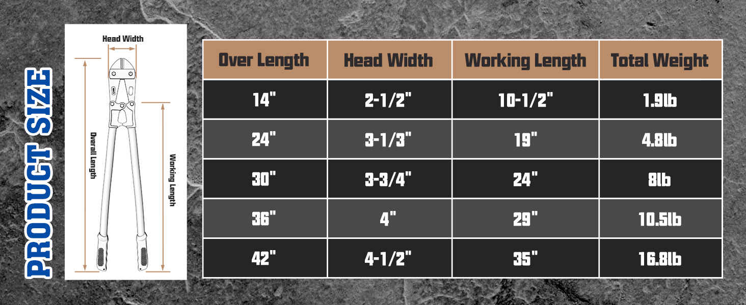 الحجم والوزن: يبلغ طول قاطع البراغي SPENDINS 30 بوصة أو 750 مم ويزن 8 أرطال. مدمج لسهولة التخزين والتشغيل في مساحات محدودة. تم تصميم البراغي اللامركزية الموجودة على الشفرات لتعديل الخلوص. زوج من قفازات العمل شديدة التحمل متضمنة في العبوة.