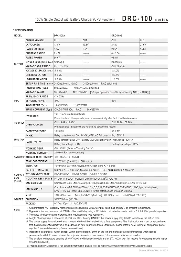 - DRC-100A 96.6W Single Output with Battery Charger DRC-100 13.8V/4.5A 13.8V/2.5A