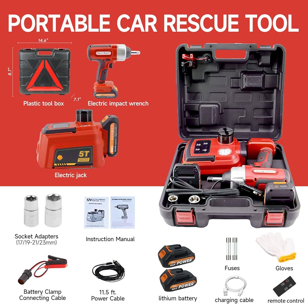 طقم مقبس السيارة الكهربائية E-HEELP يعمل بالبطارية، مقبس هيدروليكي لاسلكي للسيارة 5 طن 21 فولت مع بطارية 4.0 أمبير وجهاز تحكم عن بعد، أداة تغيير الإطارات المحمولة في حالات الطوارئ لسيارة سيدان SUV MPV بيك أب