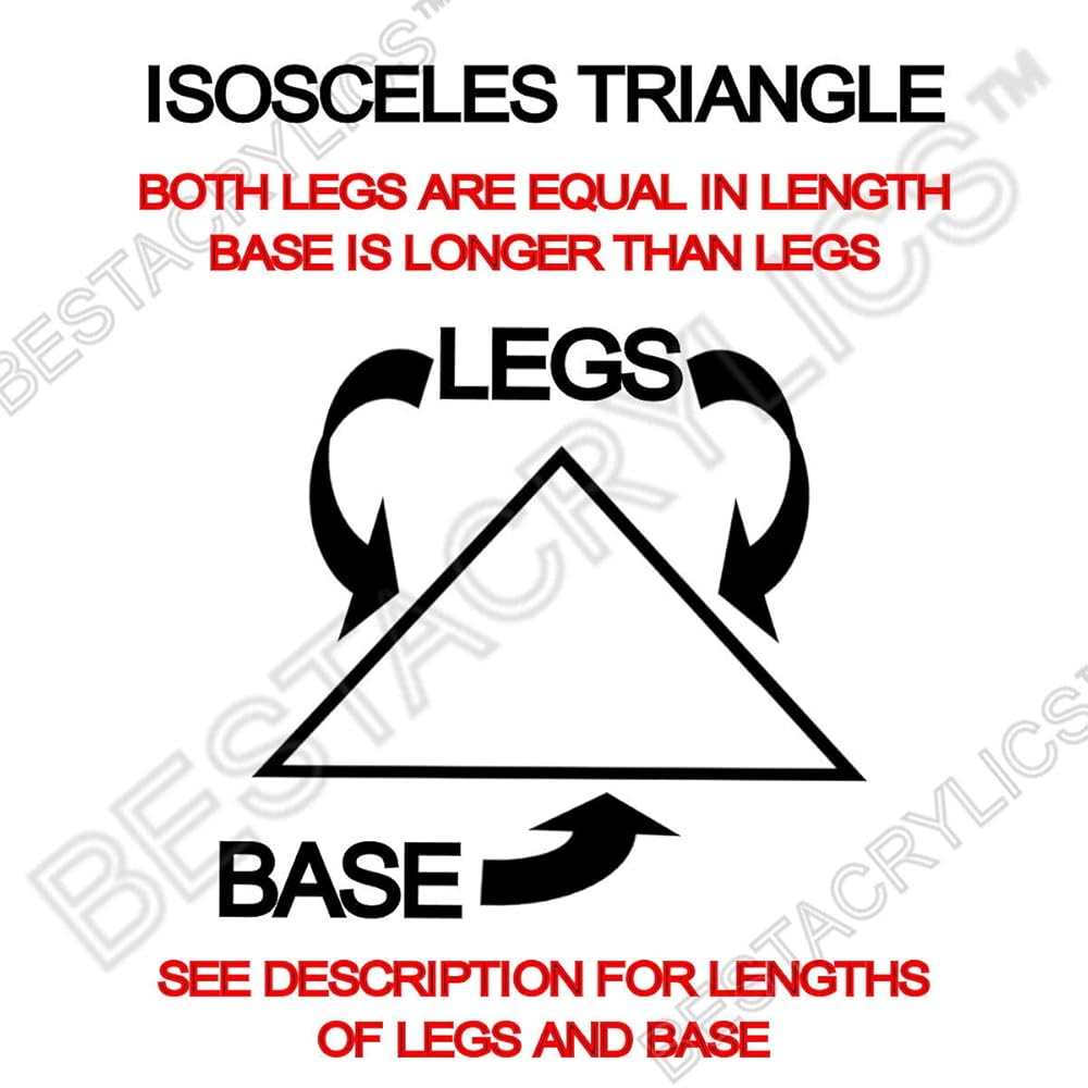 You are buying 1 (ONE) NEW 3/4" x 3/4" x 1" CLEAR EXTRUDED ACRYLIC ISOSCELES TRIANGLE ROD 18” LONG This is an isosceles triangle rod which means ONLY 2 sides (LEGS) are equal in length and the 3rd side (BASE) is longer than the 2 equal sides (LEGS). Refer to diagram in the pictures. It is referred to as a 3/4" x 3/4" x 1" rod but the BASE side of the triangle is approximately 1 1/16" or 1.062" in width. The picture shows 1 rod for representation of my product and you are buying and will receive ONLY ONE 1" x 1" x 1 1/16" TRIANGLE 18" ROD. To assure that you get the finest quality, the protective sleeve is kept in place on the rod while being cut to protect the acrylic. Rod has saw cut edges on both ends. Please allow a tolerance of +/- 1/16" on all pieces.