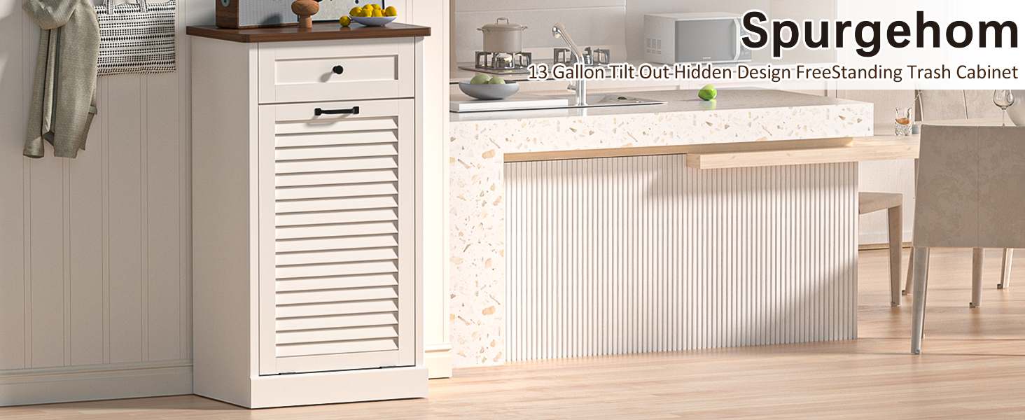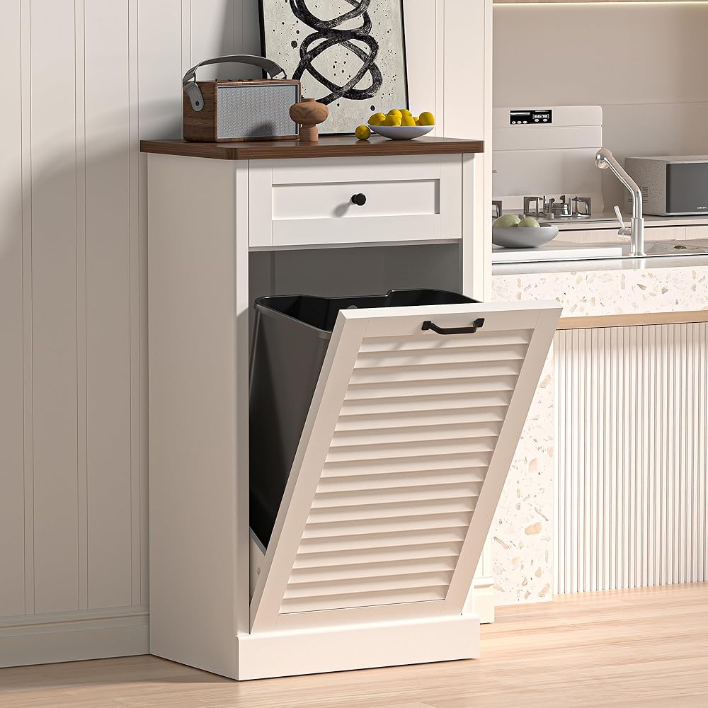【ترقية المطبخ الأنيقة والموفرة للمساحة】 خزانة القمامة الخشبية القابلة للإمالة تخفي سلة القمامة الخاصة بك بشكل أنيق، مما يحافظ على الأرضيات نظيفة ومطبخك يبدو رائعًا. إنها تمنع الحيوانات الأليفة من الانقلاب أو البحث في القمامة - بالإضافة إلى أنها تصنع منزلًا أكثر ترتيبًا وأكثر راحة لعائلتك. بصمة صغيرة، كبيرة من الناحية العملية.