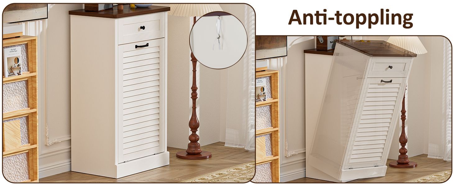 【الثبات والأمان】مصنوعة من مواد عالية الجودة للاستخدام اليومي طويل الأمد، تتميز خزانة سلة المهملات هذه بقاعدة قائمة على الأرض لتعزيز الثبات، بالإضافة إلى مجموعات مضادة للانقلاب تمنع الإصابات الناجمة عن الانقلاب العرضي - نوصي بشدة بتثبيتها بشكل آمن على الحائط لتحقيق أقصى قدر من الأمان.
