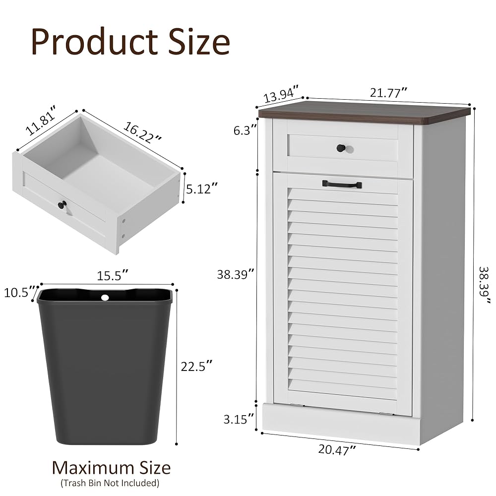 【سهلة التجميع】تأتي خزانة القمامة هذه مع تعليمات تجميع واضحة وموجزة، مما يجعل إعدادها سهلاً حتى بالنسبة لأولئك الذين ليسوا خبراء في الأعمال اليدوية. يرجى التحقق من كل جزء وفقًا للتعليمات المرفقة في العبوة. يمكنك تثبيت الخزانة وفقًا للتعليمات خطوة بخطوة. لا تحتوي الخزانات على سلال قمامة، ويُرجى الرجوع إلى معلومات الحجم الموجودة على الصفحة.
