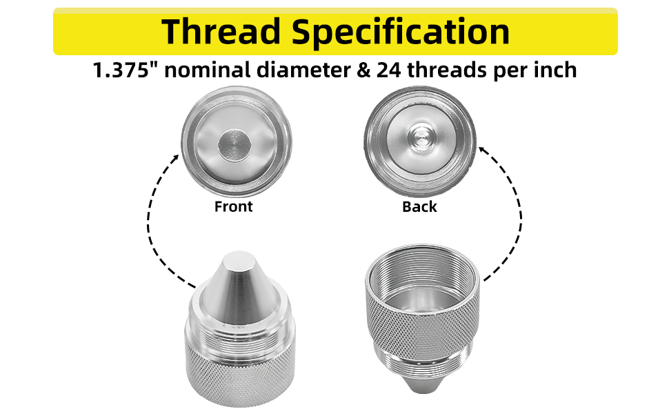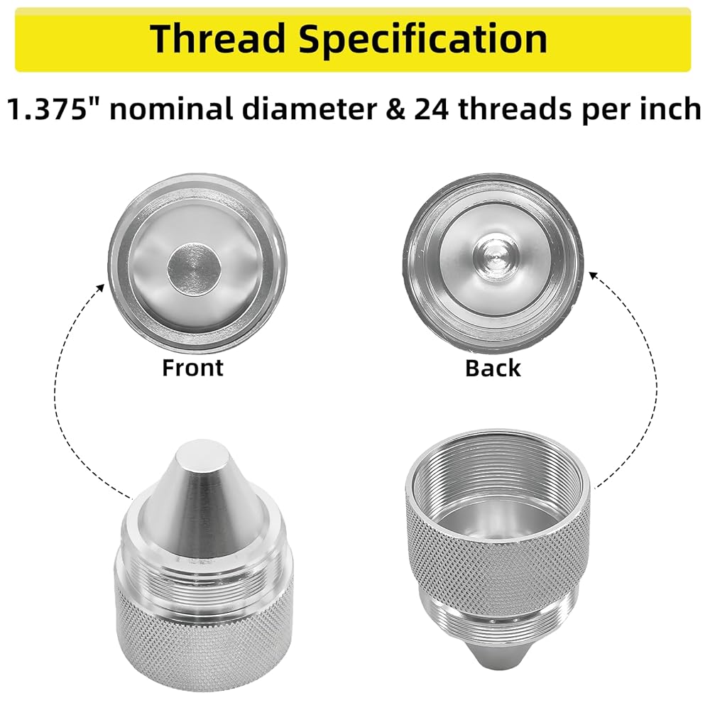 متوافق مع: تم تصميم هذه الأجزاء ذات الأشكال المخروطية المصنوعة من سبائك الألومنيوم لتناسب مكونات الأجزاء المخروطية القياسية مقاس 1.375 × 24، وتم تصنيعها بدقة بمواصفات خيط دقيقة. تتوافق أغطية النهاية المخروطية الشكل 1.375 مع معظم السيارات والشاحنات وسيارات الدفع الرباعي، مما يضمن ملاءمة آمنة ومستقرة تساعد على تقليل الاهتزاز أو الارتخاء أثناء القيادة اليومية