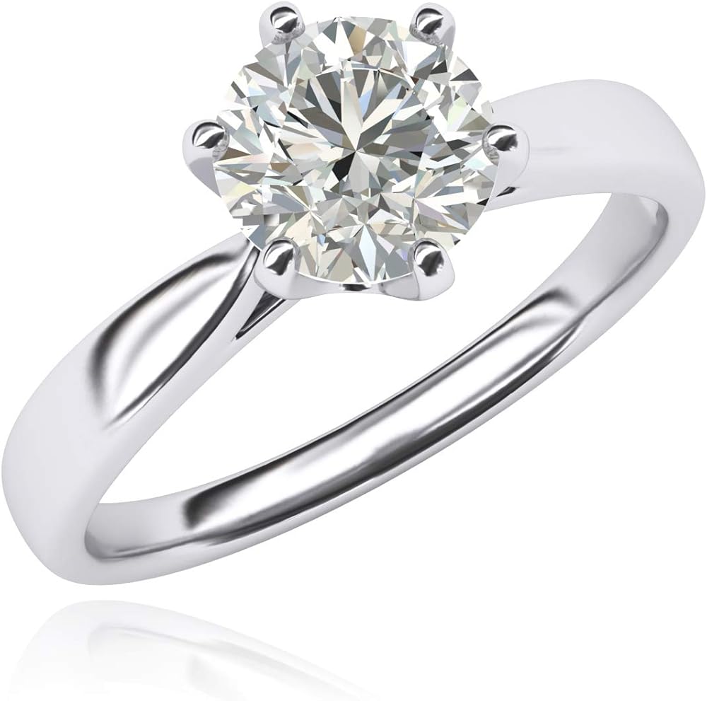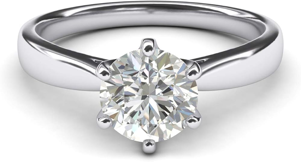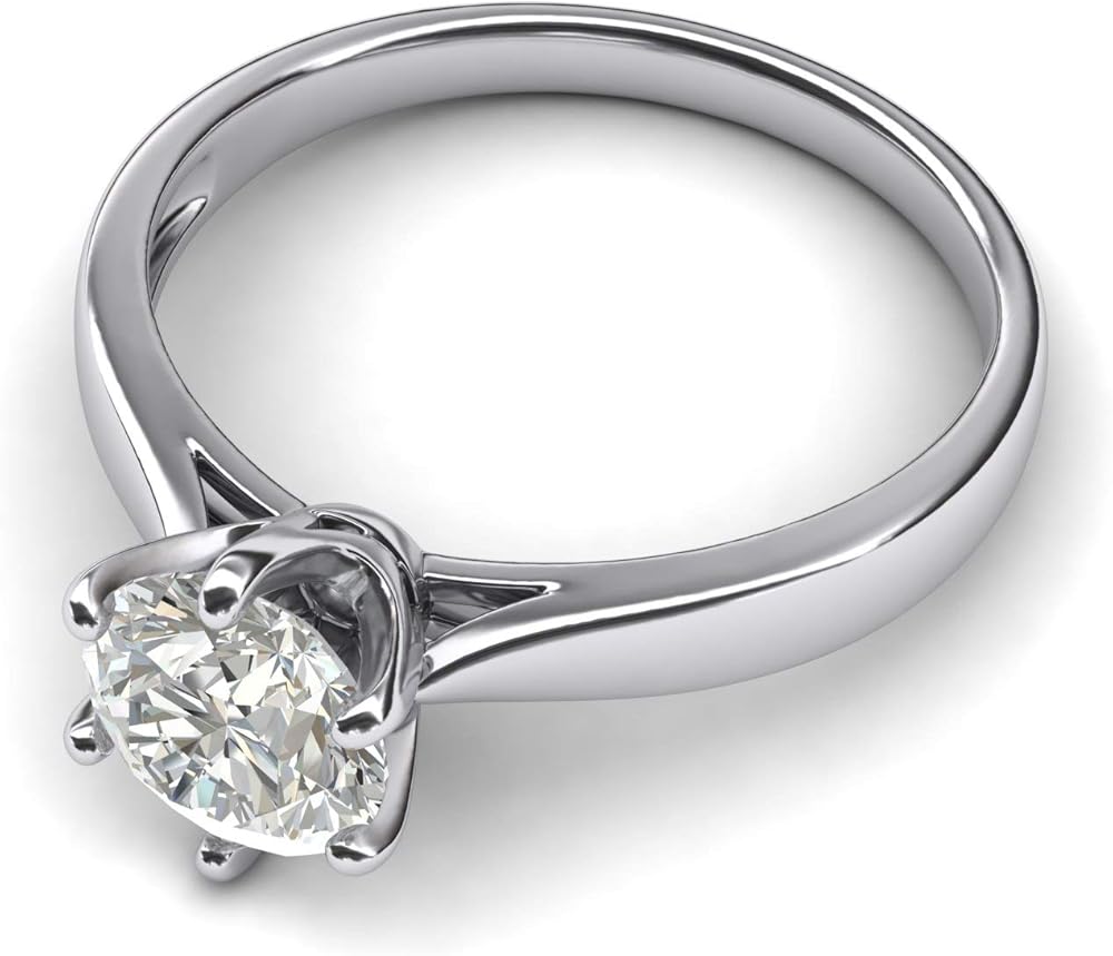 خاتم خطوبة من الذهب الأبيض الخالص عيار 10 قيراط 2.0 قيراط كلاسيكي مكون من 6 شقوق سوليتير مقلد من الألماس وعد خاتم الزفاف