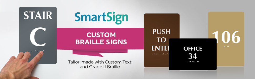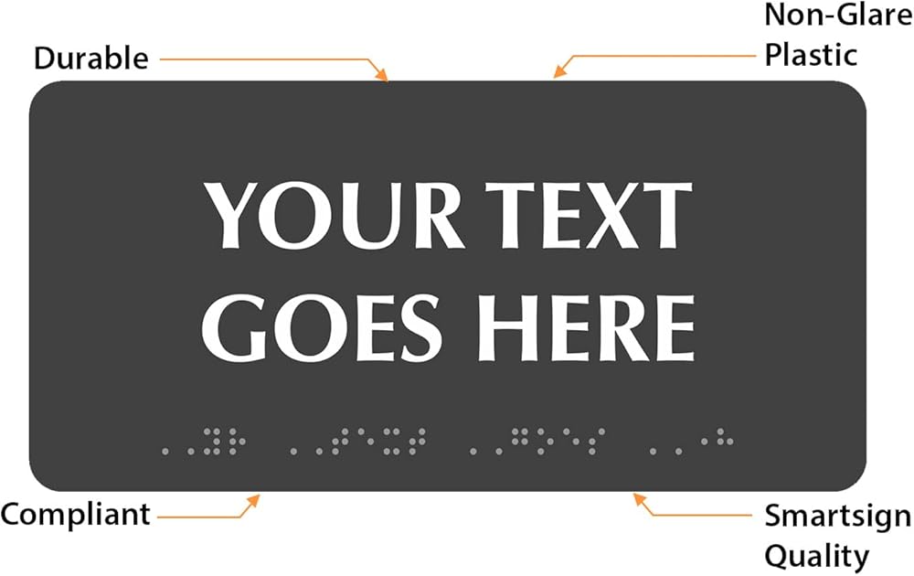 لافتة برايل مخصصة من SmartSign - 4 بوصة × 8 بوصة أفقية، متوافقة مع ADA، علامة بلاستيكية صلبة بسمك 60 مل للأعمال، في الداخل، في الهواء الطلق، الغرفة، المكتب، الحمام، خيارات أحمر/أسود/أزرق/أبيض، صنع في الولايات المتحدة الأمريكية