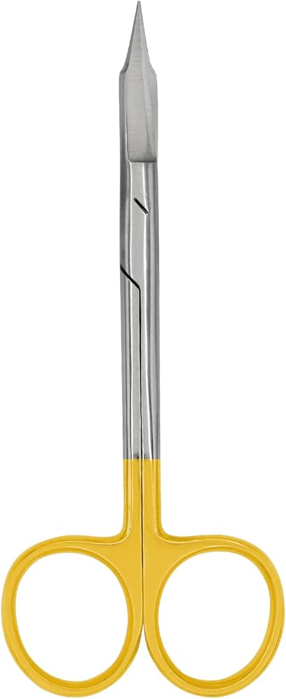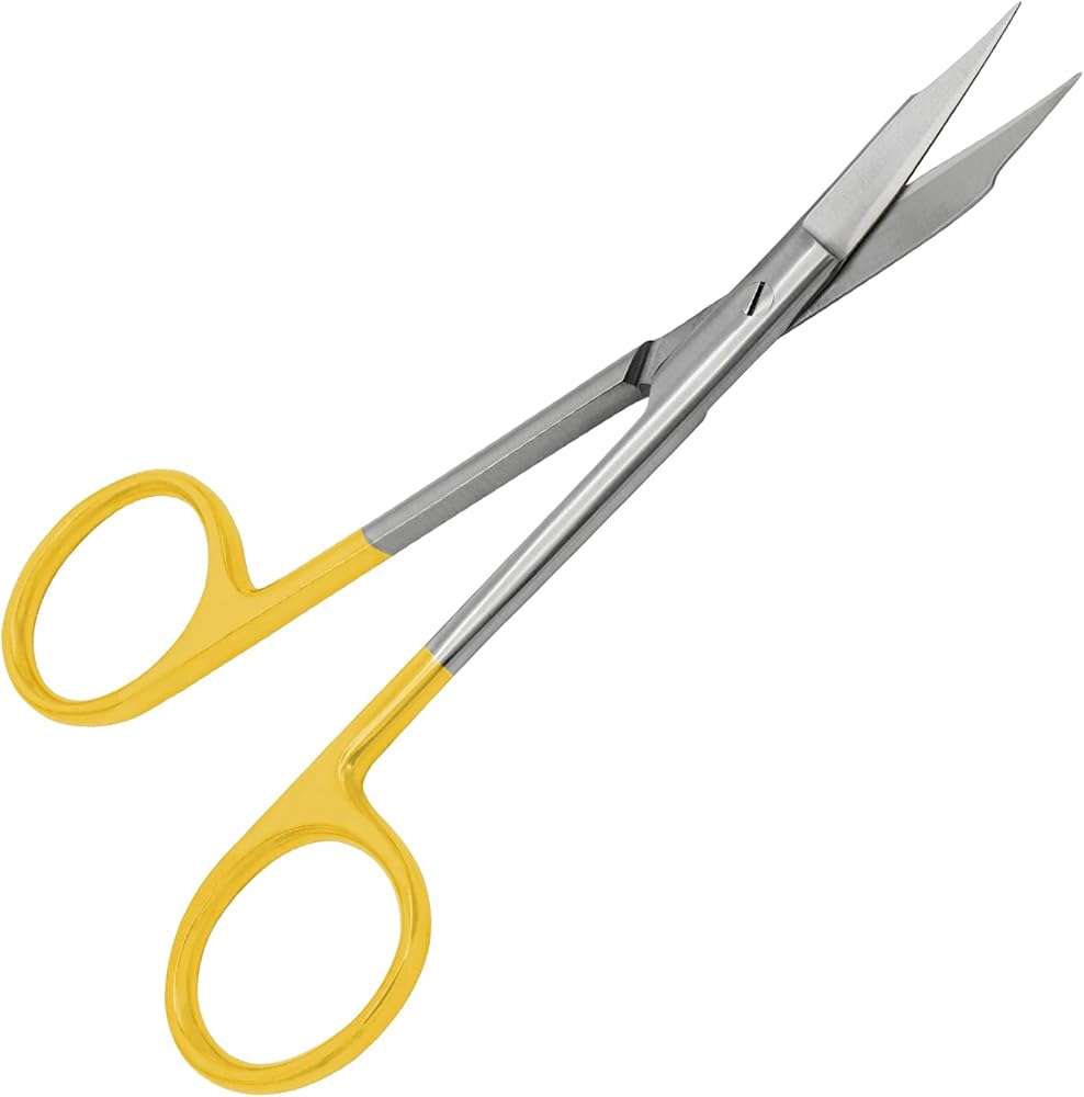 T/C Goldman Fox Scissors 5" (13 cm) Curved Dental, surgical Veterinary instruments /C Goldman Fox Scissor 5" (13 cm) - Super Cut Sharpness - Premium Quality German Stainless Steel - Gold Handles by DEXSUR (Straight Blades) Tungsten Carbide CONSTRUCTED OF DURABLE MEDICAL GRADE STAINLESS STEEL: The DEXSUR T/C Goldman Fox Scissors are Very Sharpe points forged from Premium Grade Stainless Steel and Tungsten Carbide with Superior Craftsmanship. They are corrosion resistant and tarnish free. Tungsten Carbide offers the perfect combination of unbelievable strength with style for dependable performance. ► PRECISE AND EASY TO USE: Features large comfortable gold finger ring handles for secure and controlled operation. High Degree of precision and flexibility while conducting the clinical procedure. ► DEPENDABLE AND SAFE: The SurgicalOnline TC Goldman Fox Scissors are easy to sterilize and clean. You can autoclave them without fear of degradation. Built to last for many years without breaking or bending. Aesthetically pleasing high standard polished finish.