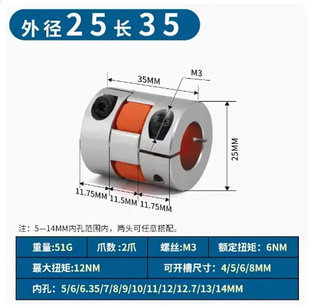D25L35 Coupler Aluminium Plum Flexible Shaft Coupling Stepper Motor Connector CNC 5/6/6.35/8/10/12/12.7/14mm 1Pcs