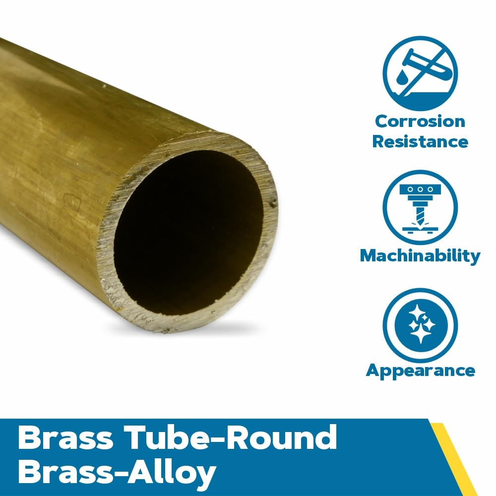 أنابيب نحاسية مستديرة، درجة حرارة H58، 5/8 بوصة OD، 0.495 بوصة معرف، 0.065 بوصة جدار، 36 بوصة طول، OnlineMetals