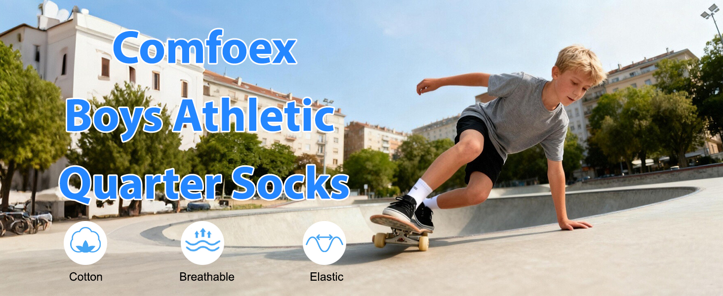Comfoex 10 Pairs Boys Quarter Socks Athletic Ankle Socks With Cushioned Sports Socks for kids 4-7 7-10 Years Old in Kuwait