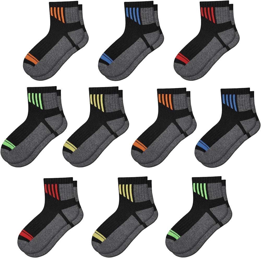 • CUSHIONED SOLE: The boys quarter socks are designed with soft cushions at the bottom. Reinforced seaming and a cushioned sole ensure the boys socks have long-lasting softness for kids' everyday wear