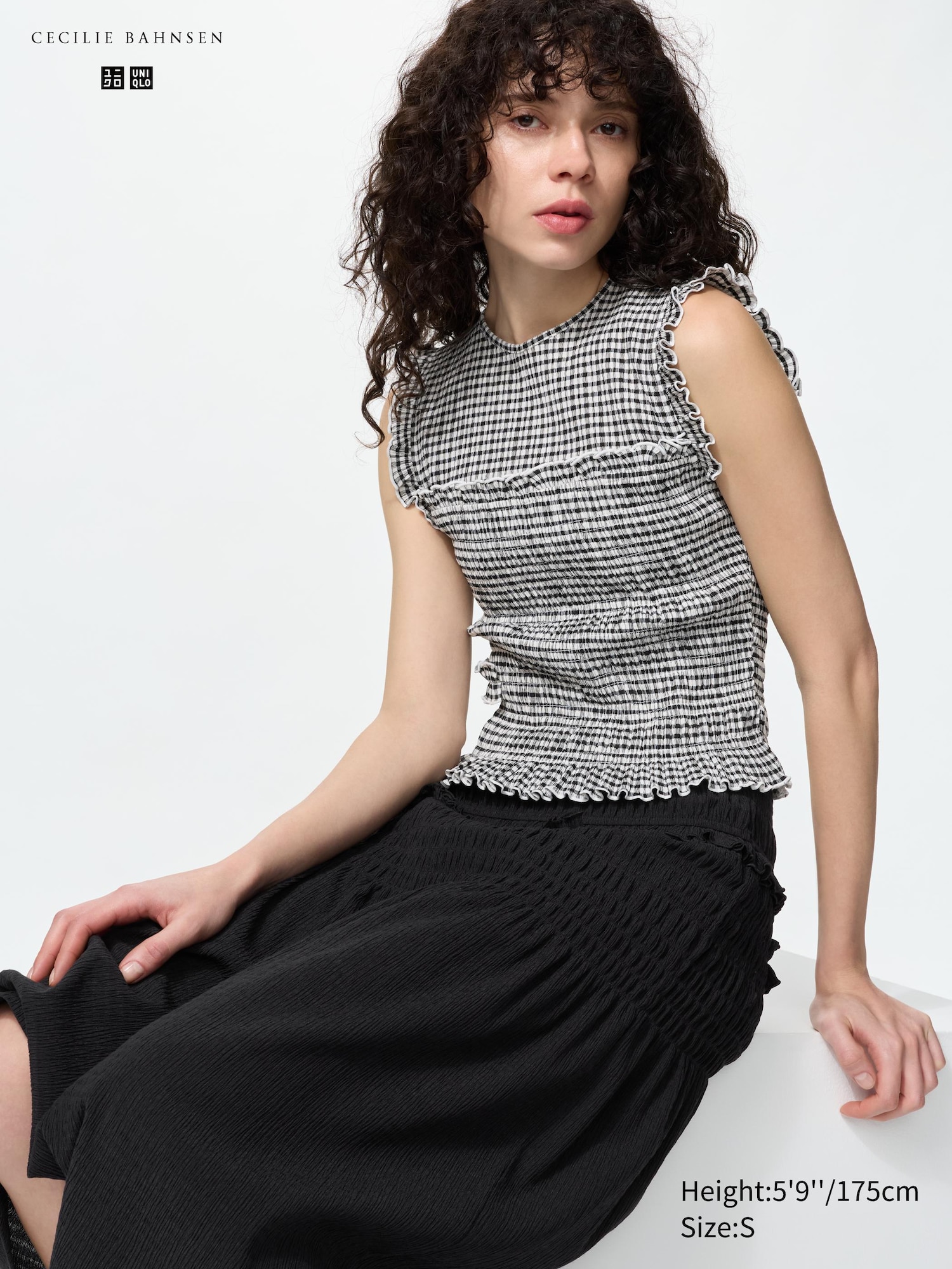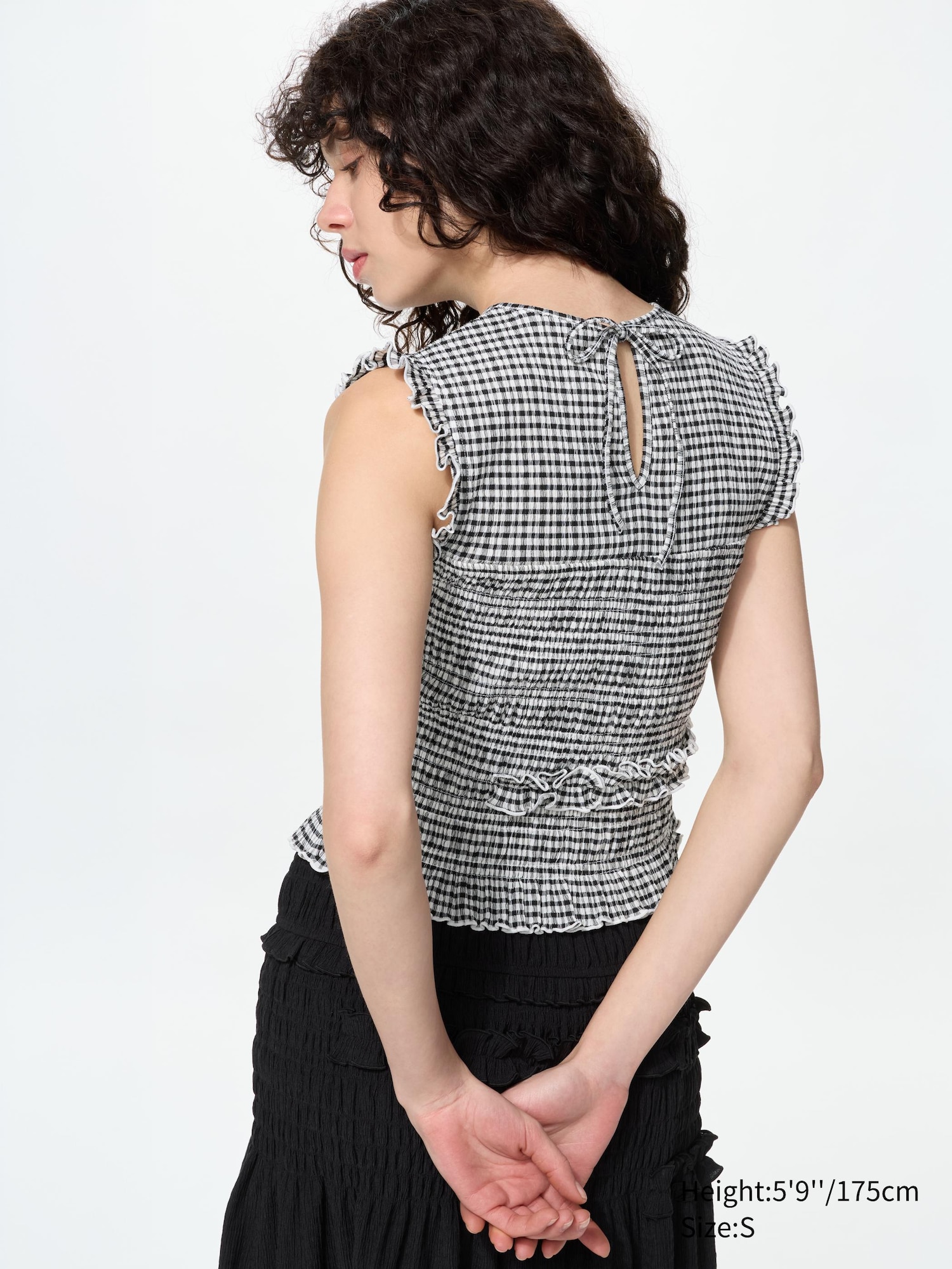 Shirring and frill details add a stylish accent.