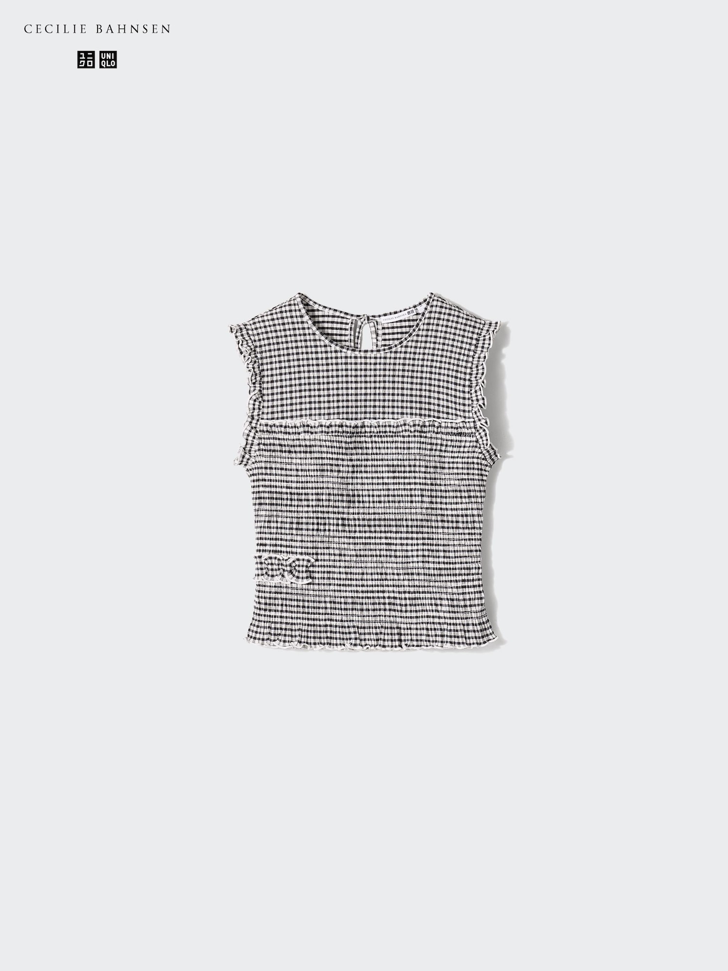 Uniqlo قميص قميص | بلا أكمام | مربعات - أوف وايت - XXS [C01 S001]