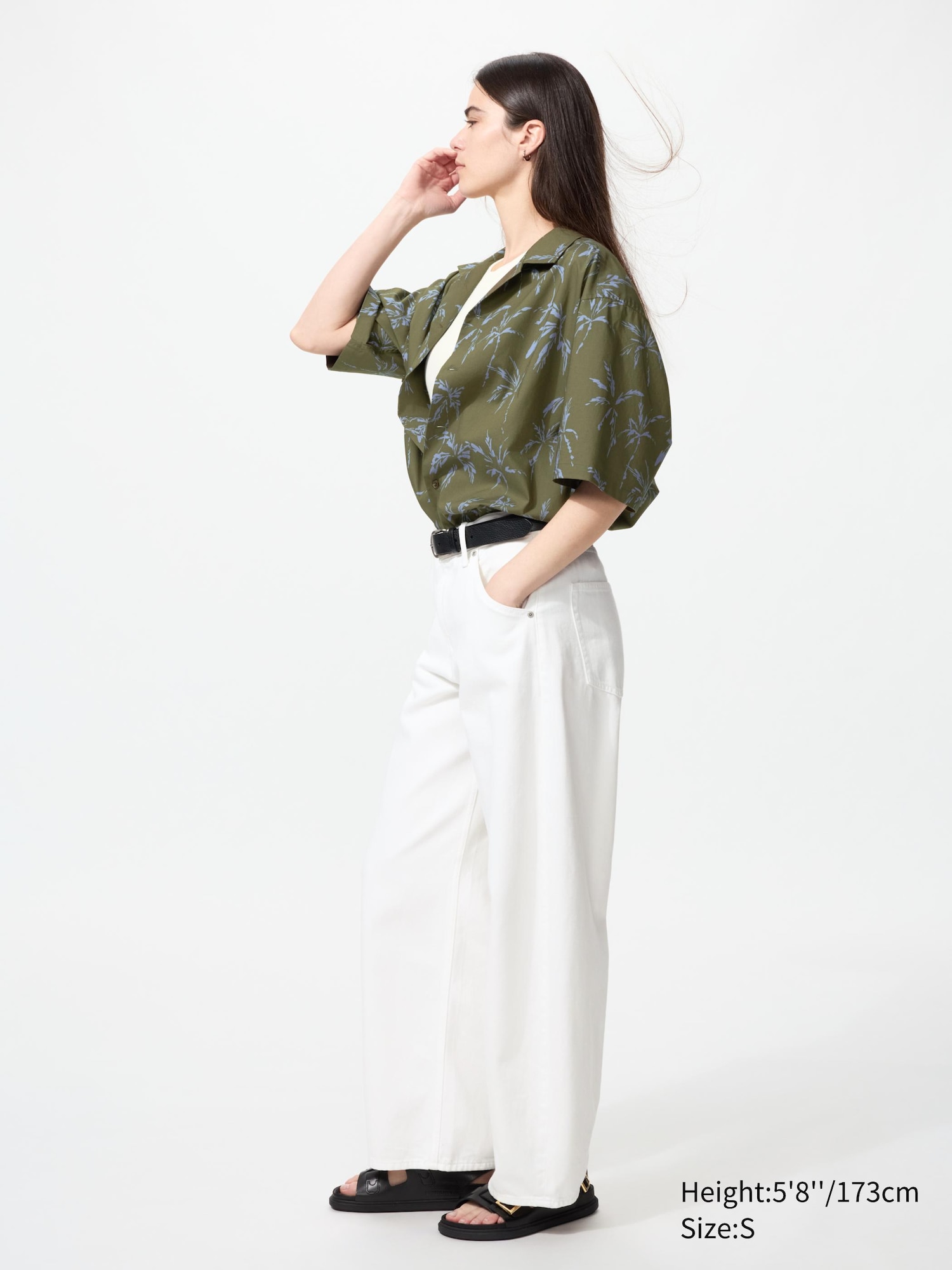 - Palm tree print adds a distinctive accent while remaining easy to coordinate with neutral bottoms.