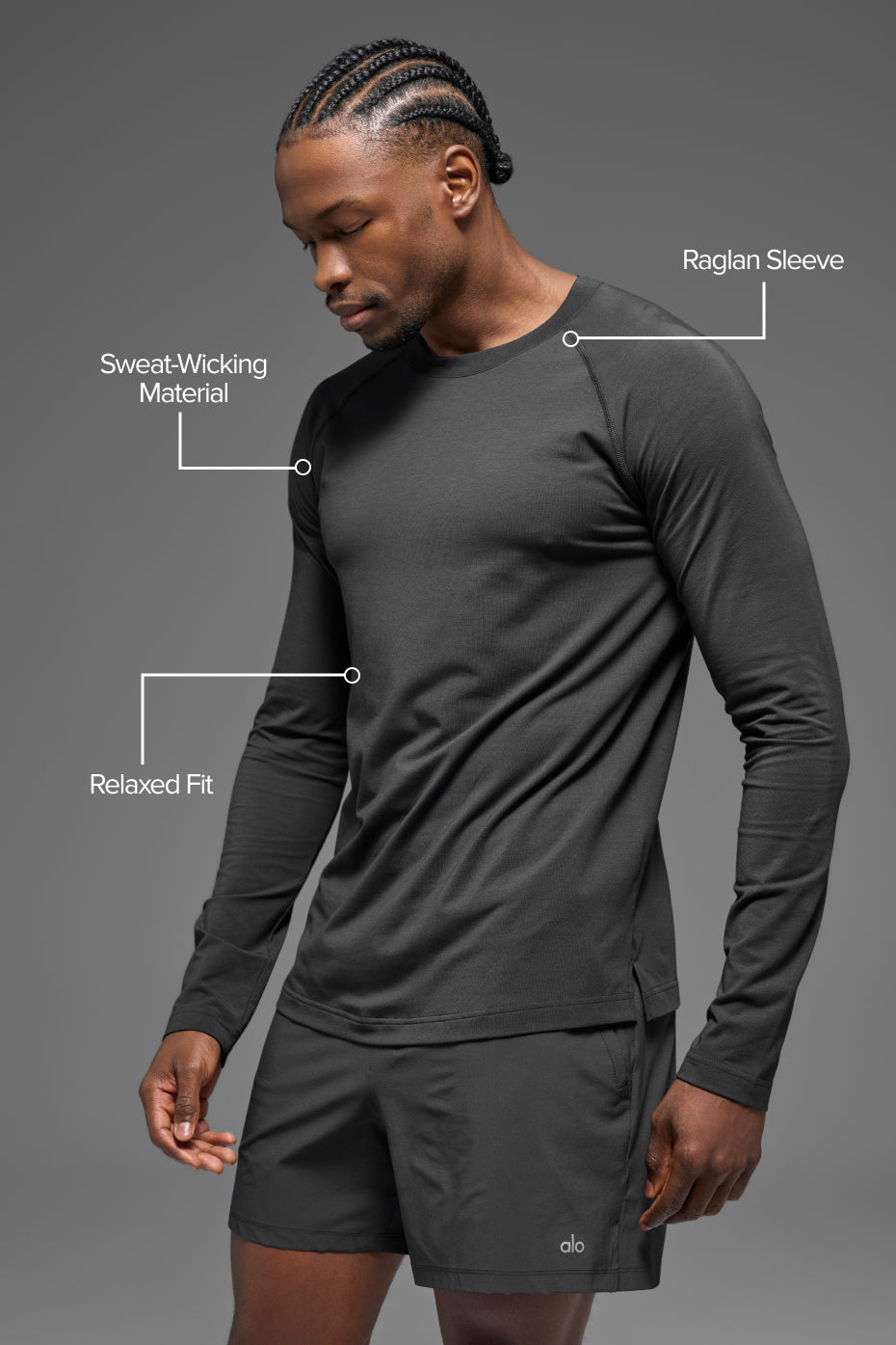 Alo Yoga ALO Vapor كم طويل - أنثراسيت - أنثراسايت / S