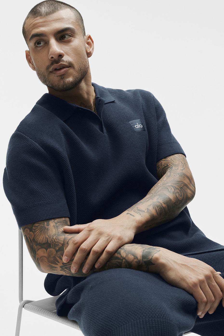 Alo Yoga Sports Club سترة بولو متماسكة - كحلي - Navy / S