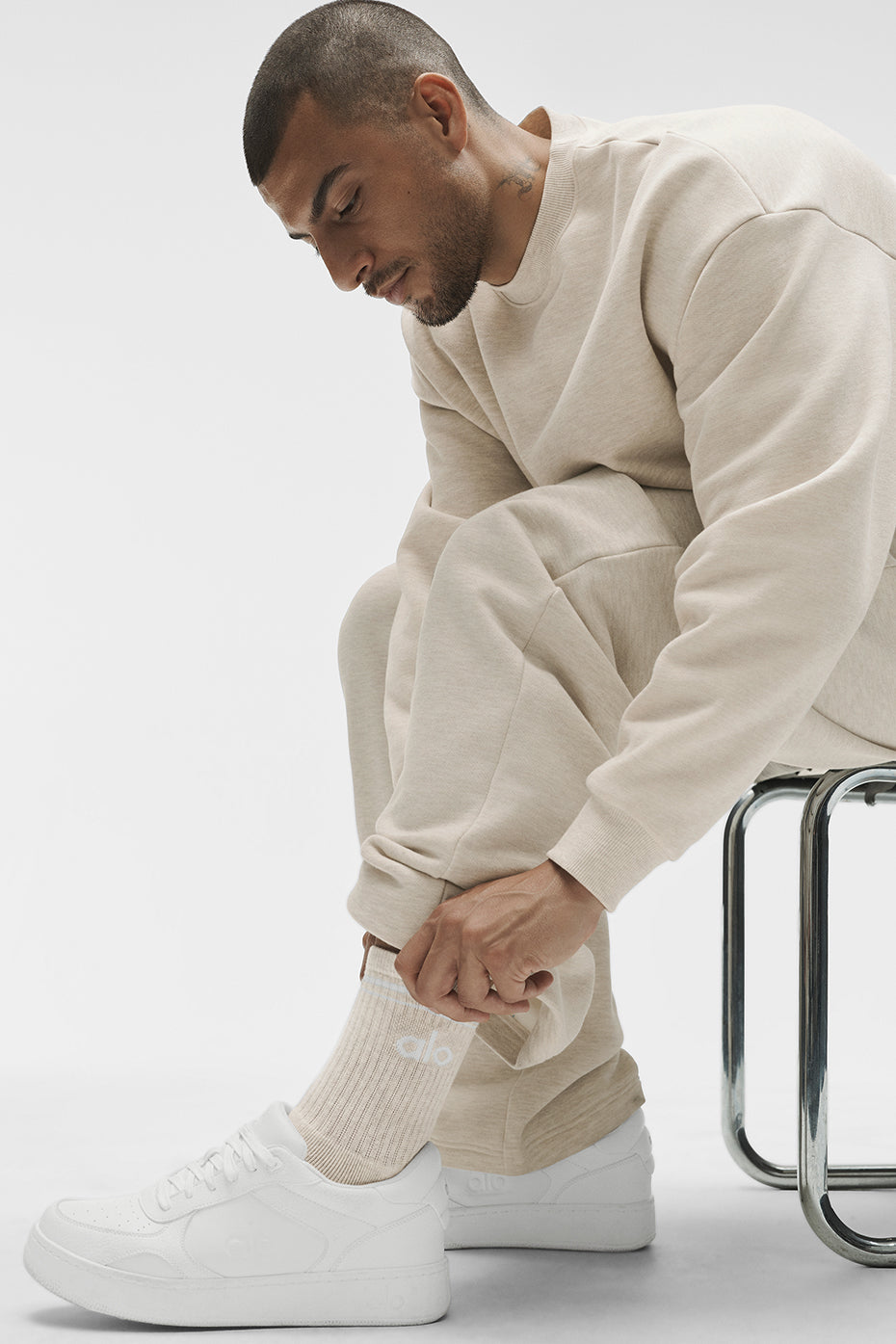 جورب Alo Yoga للجنسين بنصف طاقم - شوفان هيذر/أبيض - شوفان هيذر/أبيض / S