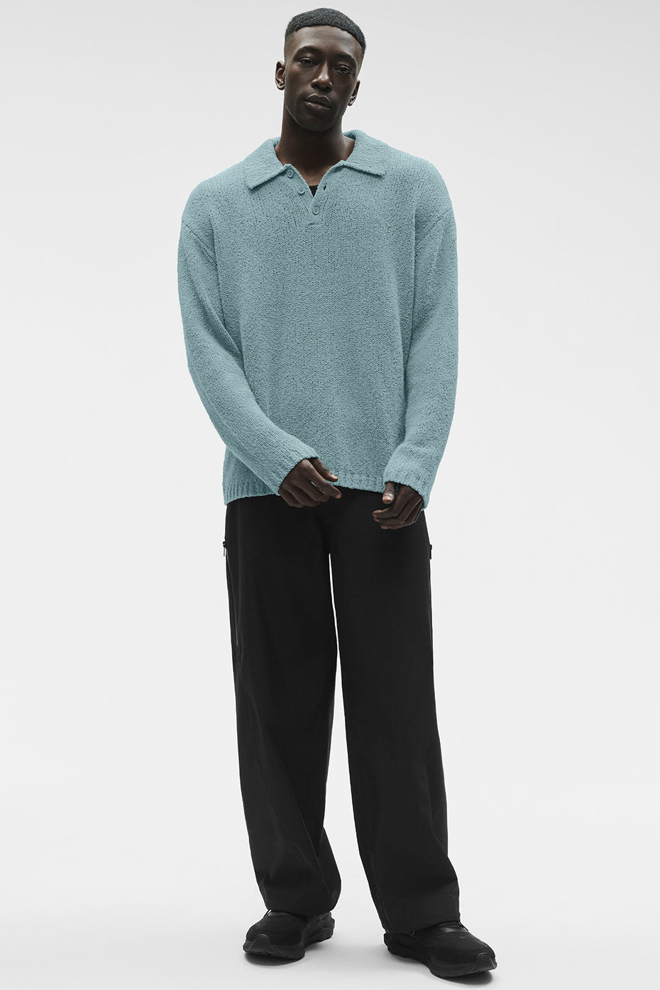 The Textured Knit Long Sleeve Polo is built from a midweight knit with a soft texture and a structured collar for a look that’s clean, confident, and quietly sharp. Wear it on its own or under a coat or jacket for a layered look with subtle style.