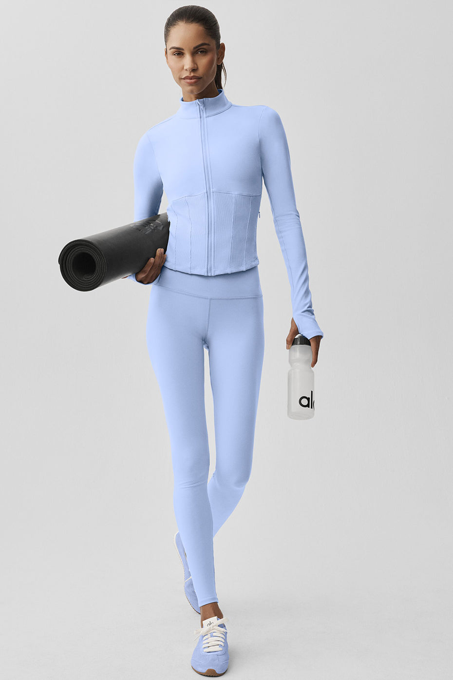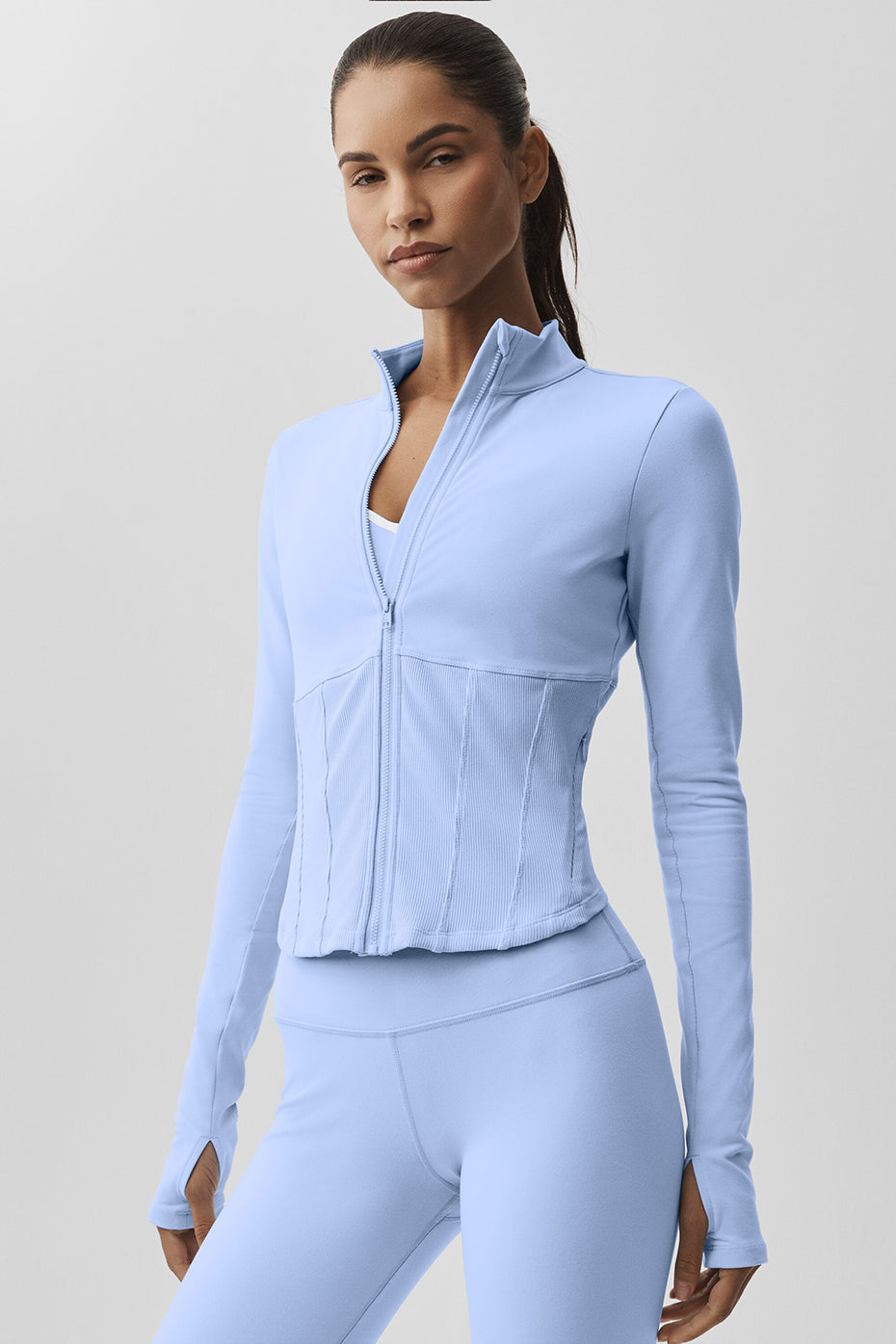 Waist-snatching corset body? Cute curved cut in front? Slim, smoothing fit? Check, check, and check. This jacket does more than flatter the figure, though: It has functional performance features, too, like a full front zipper, thumbholes and hip pockets. Plus, it’s made from Airbrush—an ALO signature fabric that feels like wearing a cottony-soft hug.