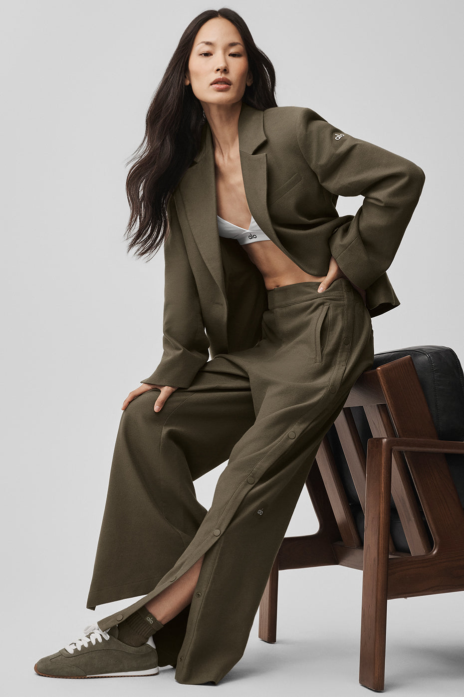 Minimal at first glance, the Mid-Rise Cosmopolitan Snap Pant reveals its detail in motion. The mid-rise waist and wide-leg shape create a relaxed-yet-polished foundation, while snap buttons along the sides offer a subtle styling shift—structured when fastened, fluid when released. Made from a soft cotton blend, they bring ease to elevated dressing. Pair it with the Cinch Blazer for a super chic look that effortlessly goes from on-the-clock to off-duty.