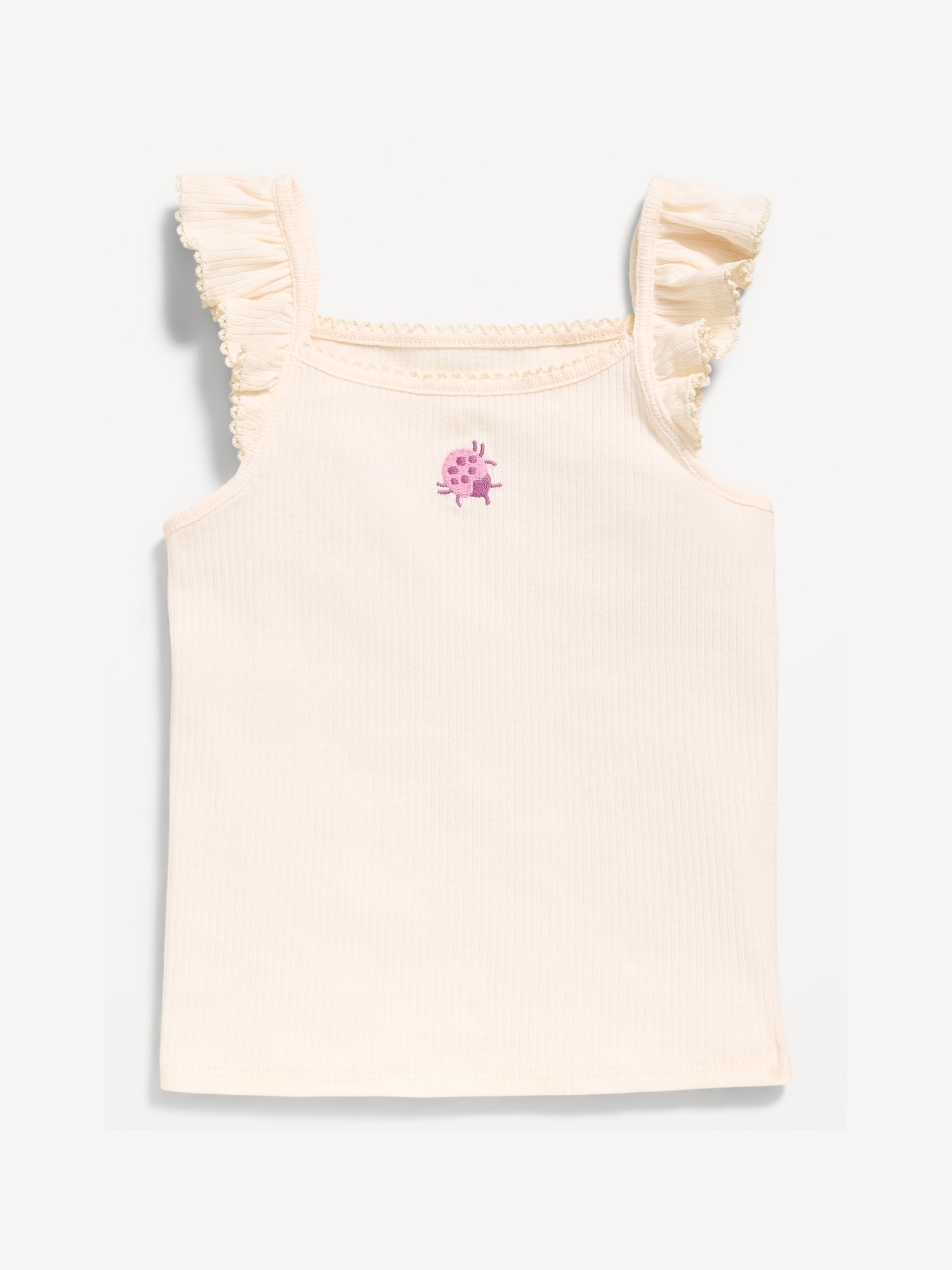قميص كامي مضلع مكشكش للفتيات الصغيرات من Old Navy - Creme De La Creme - 3T