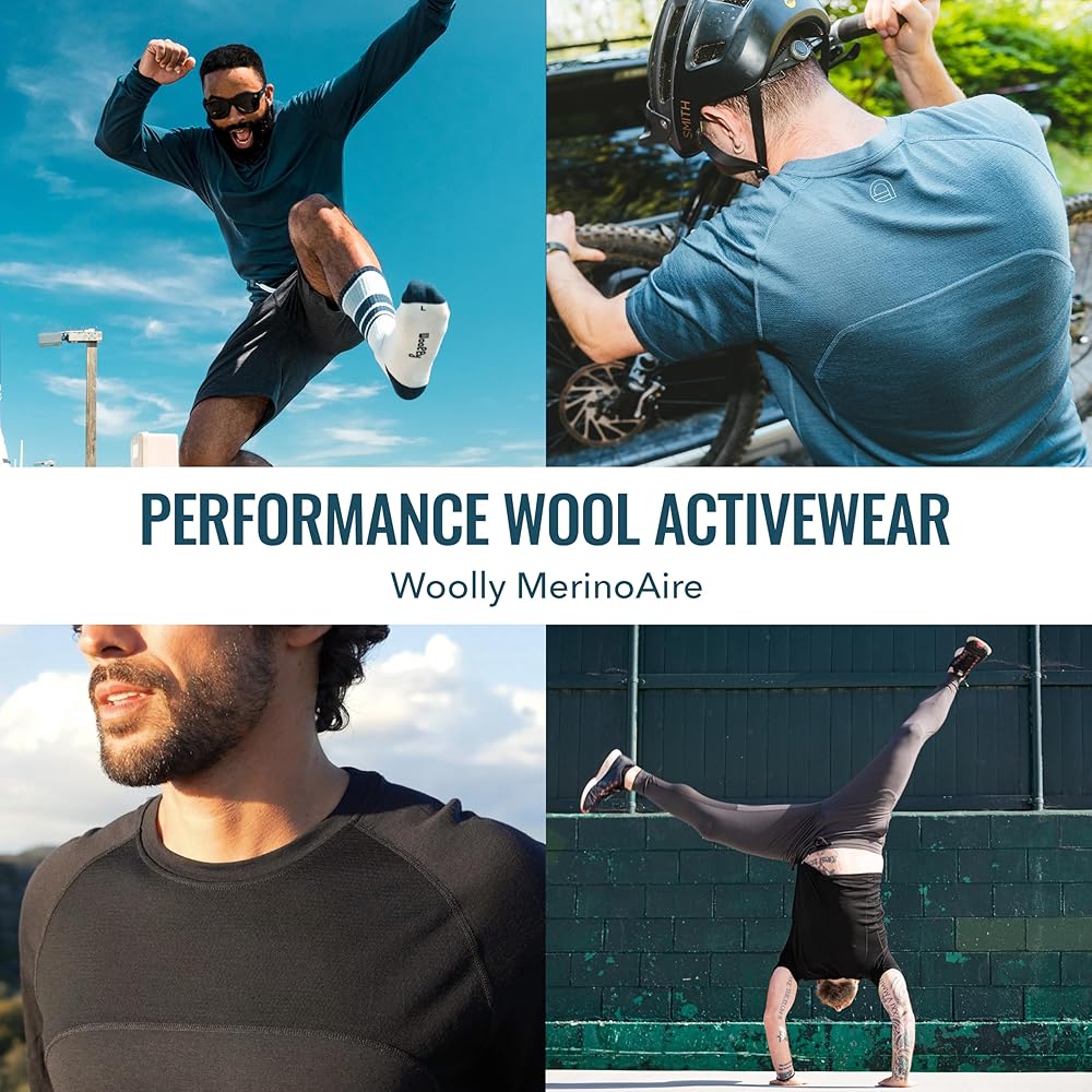 سحر الأغنام: راحة وأداء لا مثيل لهما من صوف ميرينو، يلتقي بالملابس الرياضية. مسامي بشكل طبيعي، ماص للرطوبة، ومقاوم للرائحة - مما يضمن لك البقاء منتعشًا حتى أثناء أصعب التدريبات.