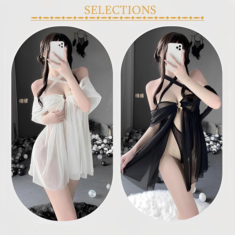 【إكسسوارات رائعة】: احتفل بمنحنياتك مع تفاصيل الحلقة المعدنية الجذابة لملابس بيبي دول الداخلية، مما يعزز منطقة الصدر ويخلق نقطة محورية جذابة. تتدفق شرائط الشيفون الأثيرية التي تشبه الشال برشاقة من الحلقة المعدنية، مما يخلق مظهرًا ساحرًا وساحرًا ينضح بالأناقة والجاذبية. استمتع بجاذبية هذه الإكسسوارات الرائعة واشعر وكأنك آلهة في كل لحظة رومانسية.