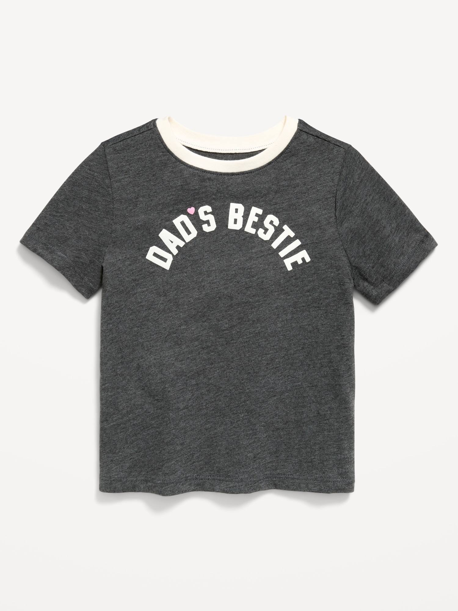 تي شيرت برسومات بأكمام قصيرة من Old Navy للفتيات الصغيرات - لون فحمي - 4T