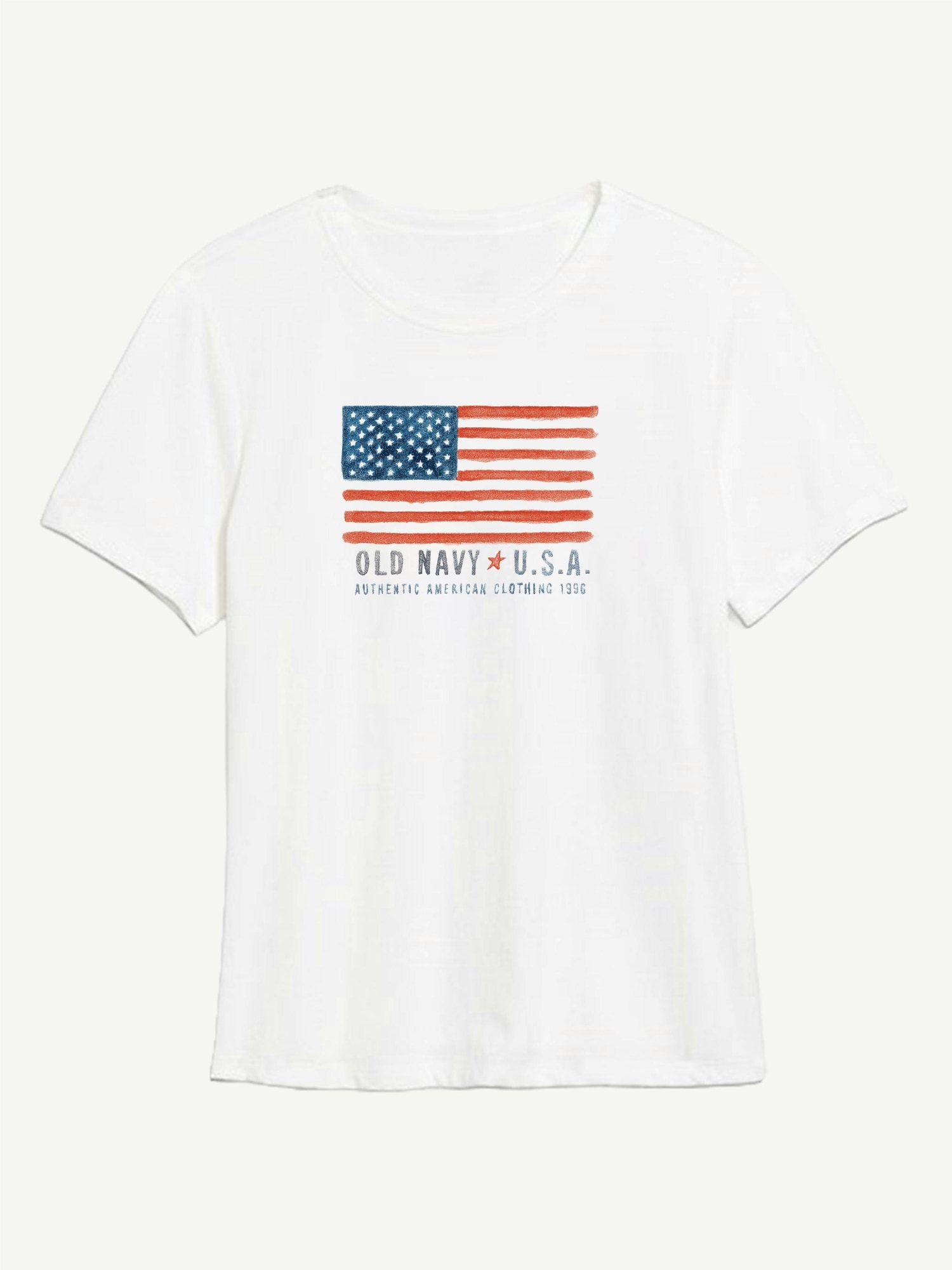 Old Navy Heritage 1996 Flag Graphic T-Shirt For Women - WHITE - M