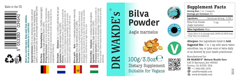 مسحوق فواكه بيلفا من دكتور واكديس (فاكهة بايل | إيجل ميرميلوس) - 100 جم (3.5 أونصة) | مسحوق نقي وخام ومجفف | عشبة الايورفيدا | نباتي | لم تتم إضافة أي شيء، ولم تتم إزالة أي شيء | إرسال في نفس اليوم