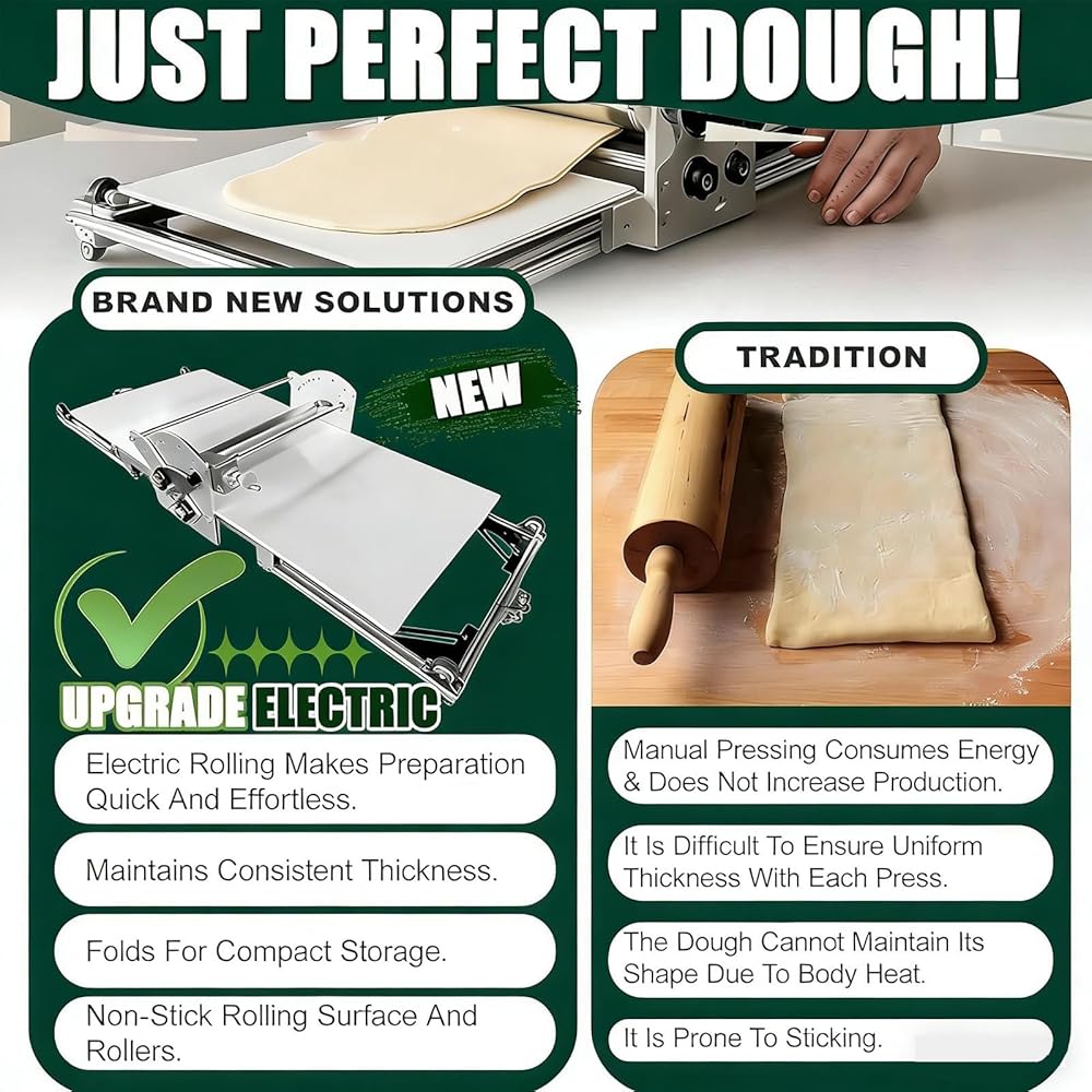 ◀️ 【كفاءة لا مثيل لها مع ماكينة فرد العجين الكهربائية مقاس 40 بوصة】قم بتحويل سير العمل الخاص بك باستخدام الناقل الواسع مقاس 40 بوصة. تنزلق أسطوانة العجين الكهربائية الاحترافية هذه العجين بسلاسة، لتحل محل ساعات العمل اليدوي مع تشغيل هادئ وسهل. استمتع بمتعة الأغطية المثالية والمتساوية في كل مرة، وتحول مشاريع الخبز الطموحة إلى متعة يومية بسيطة.
