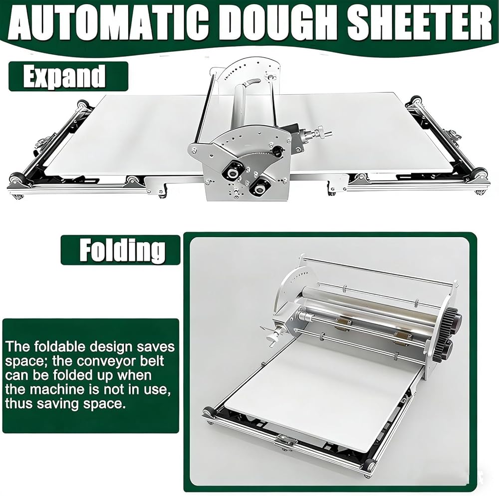 ماكينة فرد العجين الكهربائية التجارية ولفائف المعجنات، ناقل بعرض 40 بوصة، تلقائي للأمام/الخلف، سمك قابل للتعديل للكرواسون والفطيرة والمعجنات المنتفخة، تصميم مدمج قابل للطي