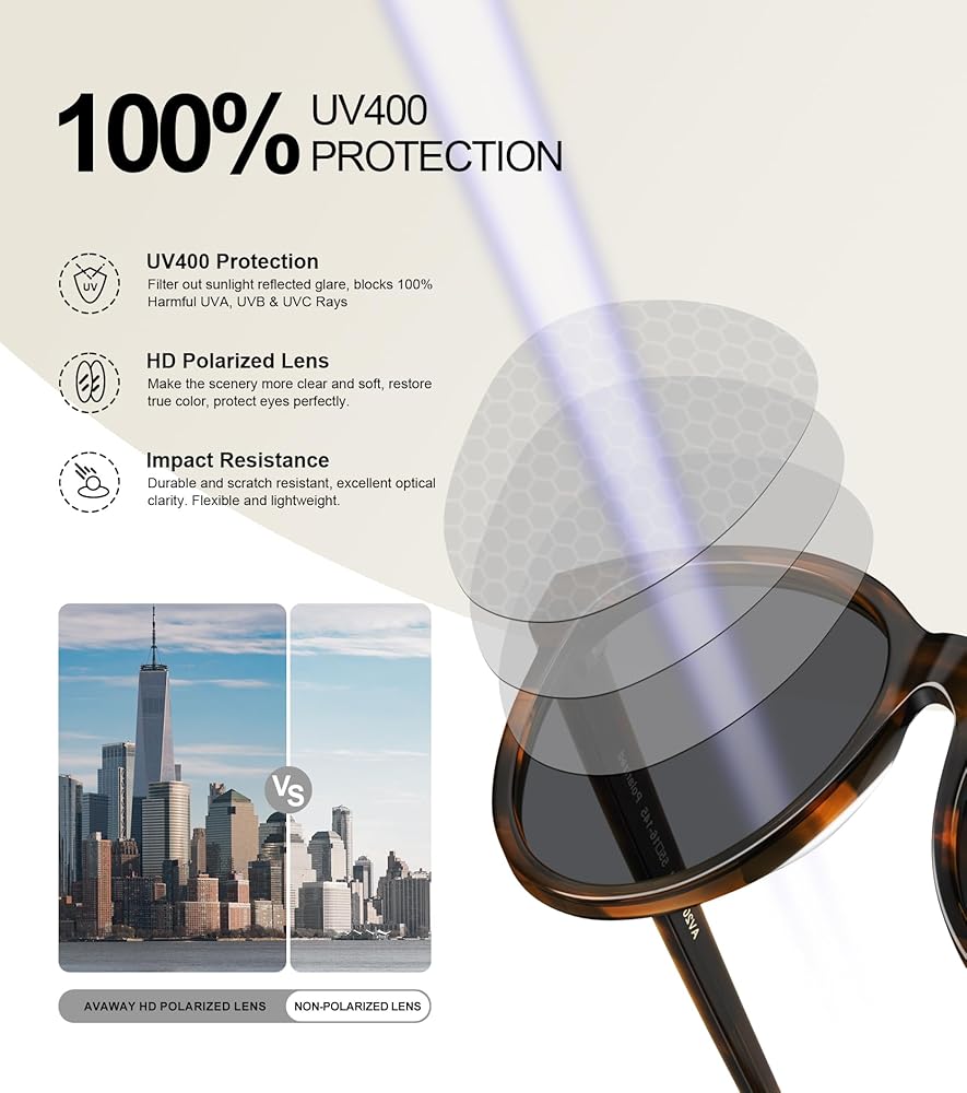 • 【ضمان الجودة】يتمتع جميع عملاء AVAWAY بضمان لمدة عام واحد. يمكن للعملاء إرجاع المنتج واسترداد أموالهم في حالة عدم رضاهم عن الشراء لأي سبب من الأسباب. يمكنك تقديم طلبك والحصول على النظارات الشمسية الخاصة بك دون أي مخاطر.