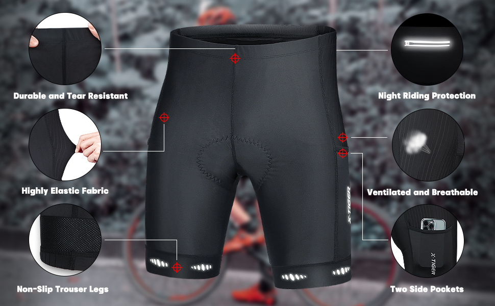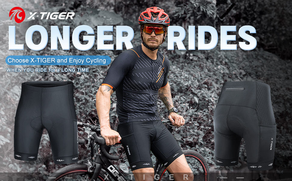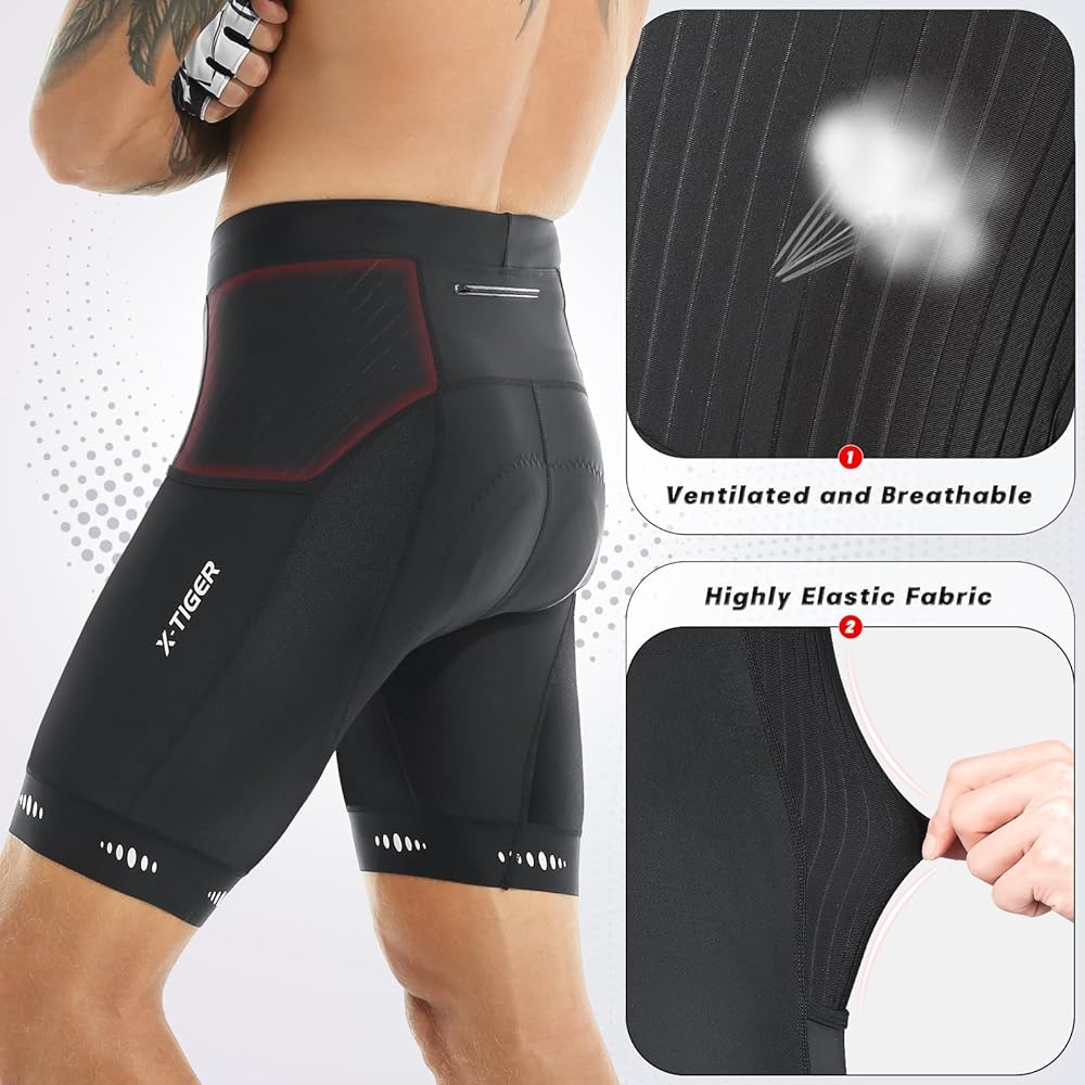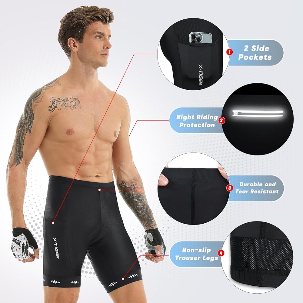 X-TIGER شورت رجالي لركوب الدراجات 5D مبطن لركوب الدراجات للرجال، ركوب الدراجات على الطرق الجبلية بعامل حماية من الأشعة فوق البنفسجية 50+ شورت ركوب الدراجات بجيوب بسحاب