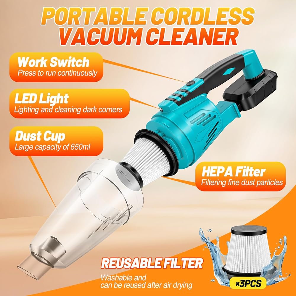 ✅البطارية والشاحن غير متضمنين! مكنسة كهربائية لاسلكية فقط. متوافق مع بطارية ماكيتا 18 فولت.