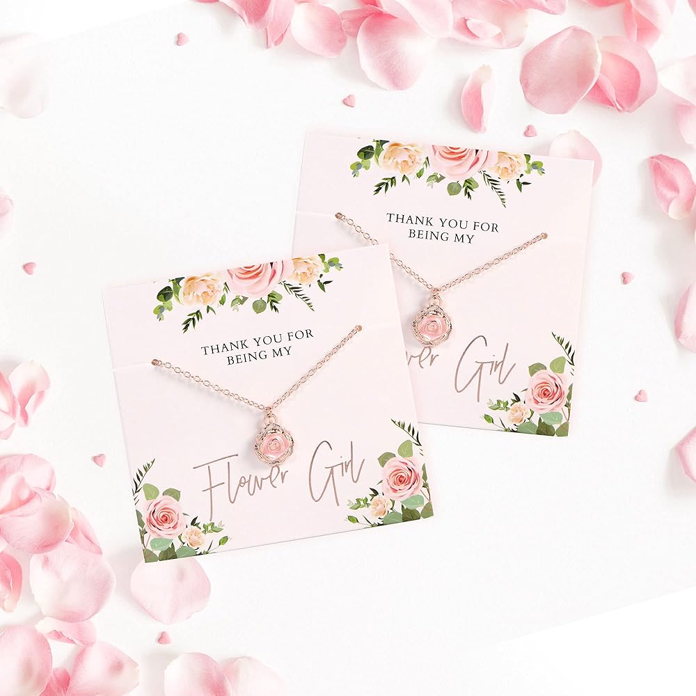 🌸 جاهزة، جاهزة، هدية! تأتي كل قلادة على بطاقة هدايا فاخرة، مع سلسلة قابلة للتعديل. فما تنتظرون؟ قلادات الفتيات الزهرية الخاصة بنا تمثل هدية مثالية لفتاة الزهور أو اقتراح فتاة الزهور!