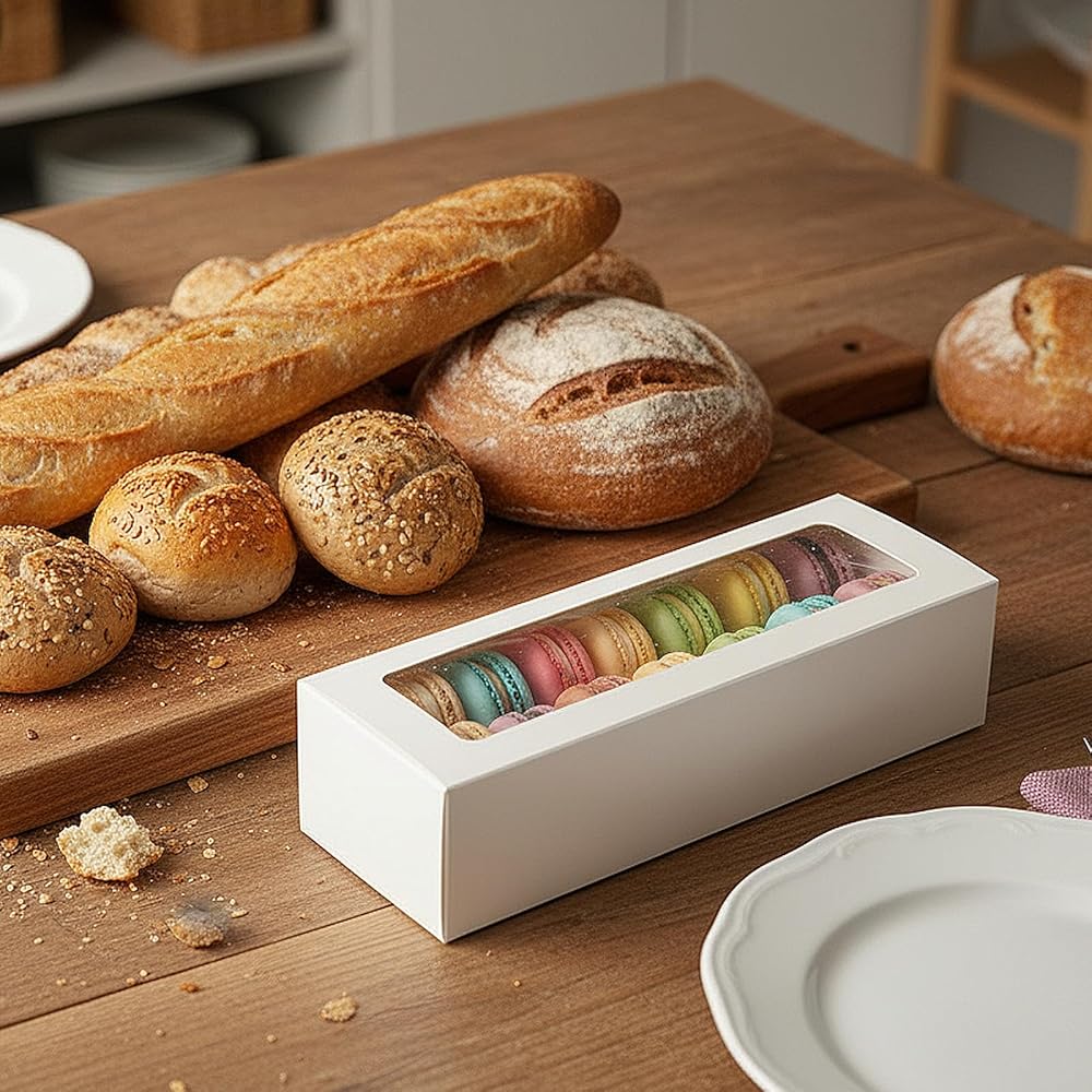 Our macaron boxes with clear windows are designed for both functionality and presentation, making them ideal for packaging various baked goods and desserts. These versatile containers ensure your macarons, cookies, and truffles remain protected while being displayed attractively. Suitable for professional bakeries, home bakers, and special events, these boxes offer a perfect blend of durability and aesthetic appeal for gift-giving and commercial use.