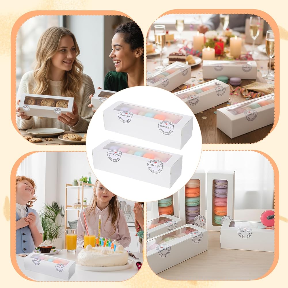 • 【Value Pack】You will receive 100 pieces of unassembled macaron boxes and 100 pcs stickers, providing ample quantity for home bakers, small businesses, or event preparations. This bulk package ensures you have enough containers for large batches of macarons, cookies, or truffles, making it ideal for wedding favors, birthday parties, and holiday gifts. The inclusion of a clear display window allows for attractive presentation without opening the box, enhancing the visual appeal of your baked goods and desserts.