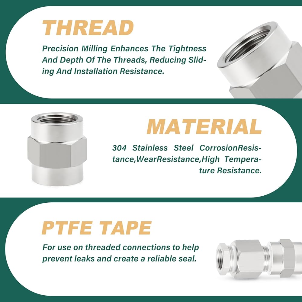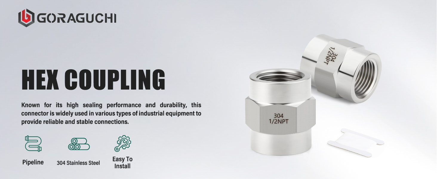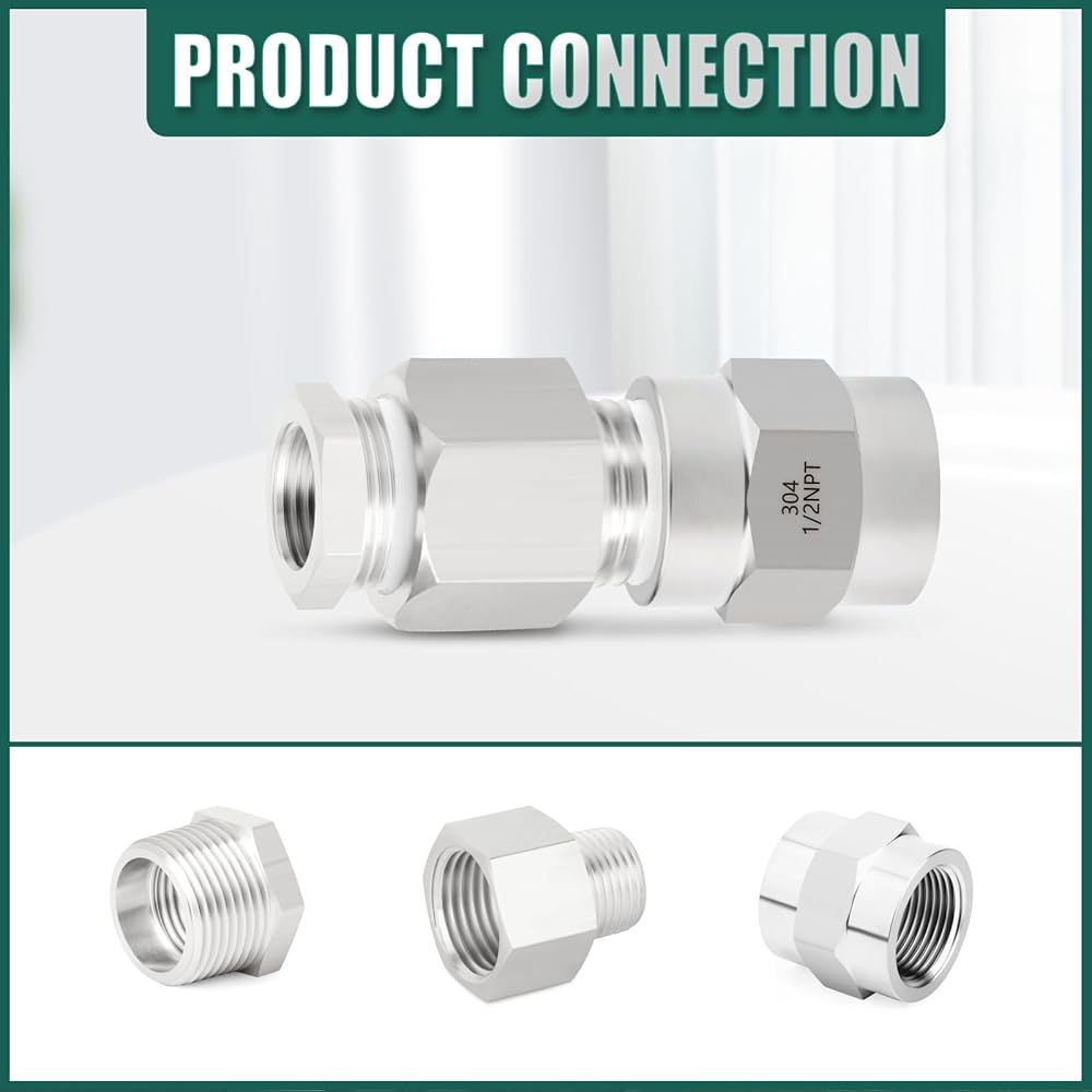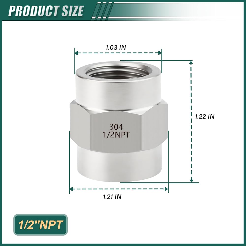 الحجم: 1/2 بوصة NPT أنثى × 1/2 بوصة NPT أنثى، لتوصيل الأنابيب الصناعية أو التركيبات بأنواع أو أقطار أو مواد نهائية مختلفة.