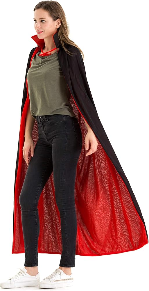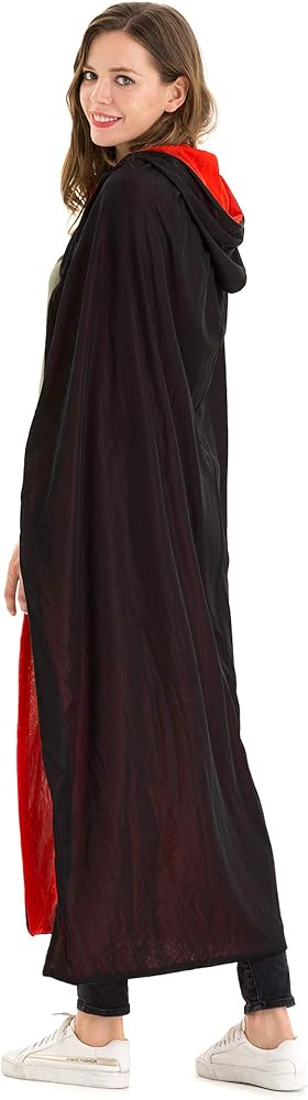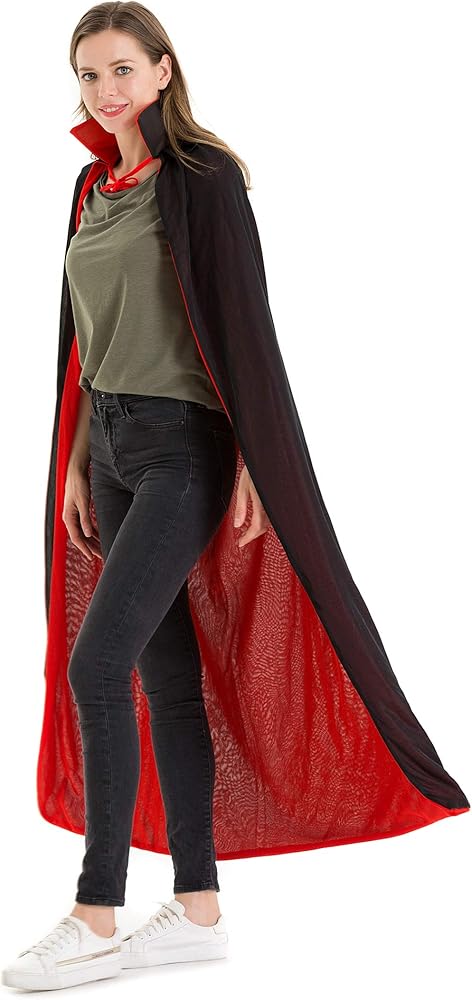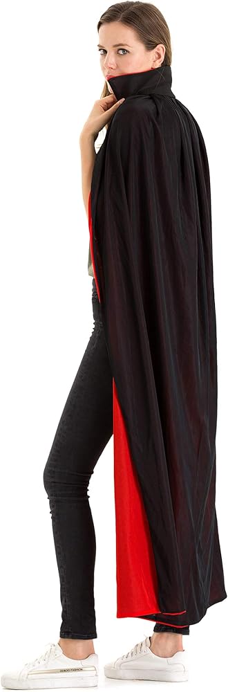 - الطول 55 بوصة، من الكتف إلى الحاشية. يمكن ارتداء هذه العباءة المعكوسة على كلا الجانبين - جانب واحد أسود والجانب الآخر أحمر. وسهلة الارتداء