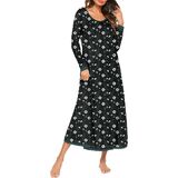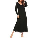 ❉تصميم كلاسيكي: قميص نوم فائق النعومة يتميز بملابس نوم بأكمام طويلة، وقميص نوم كلاسيكي برقبة واسعة، وملابس نوم بلون موحد ومرقعة، وفستان طويل للاسترخاء. قميص نوم بألوان متباينة مزخرف عند الرقبة المستديرة وأساور الأكمام والحاشية. ثوب نوم كامل الطول يوازن بين نمط الحياة الأنيق والدفء في الخريف والشتاء.